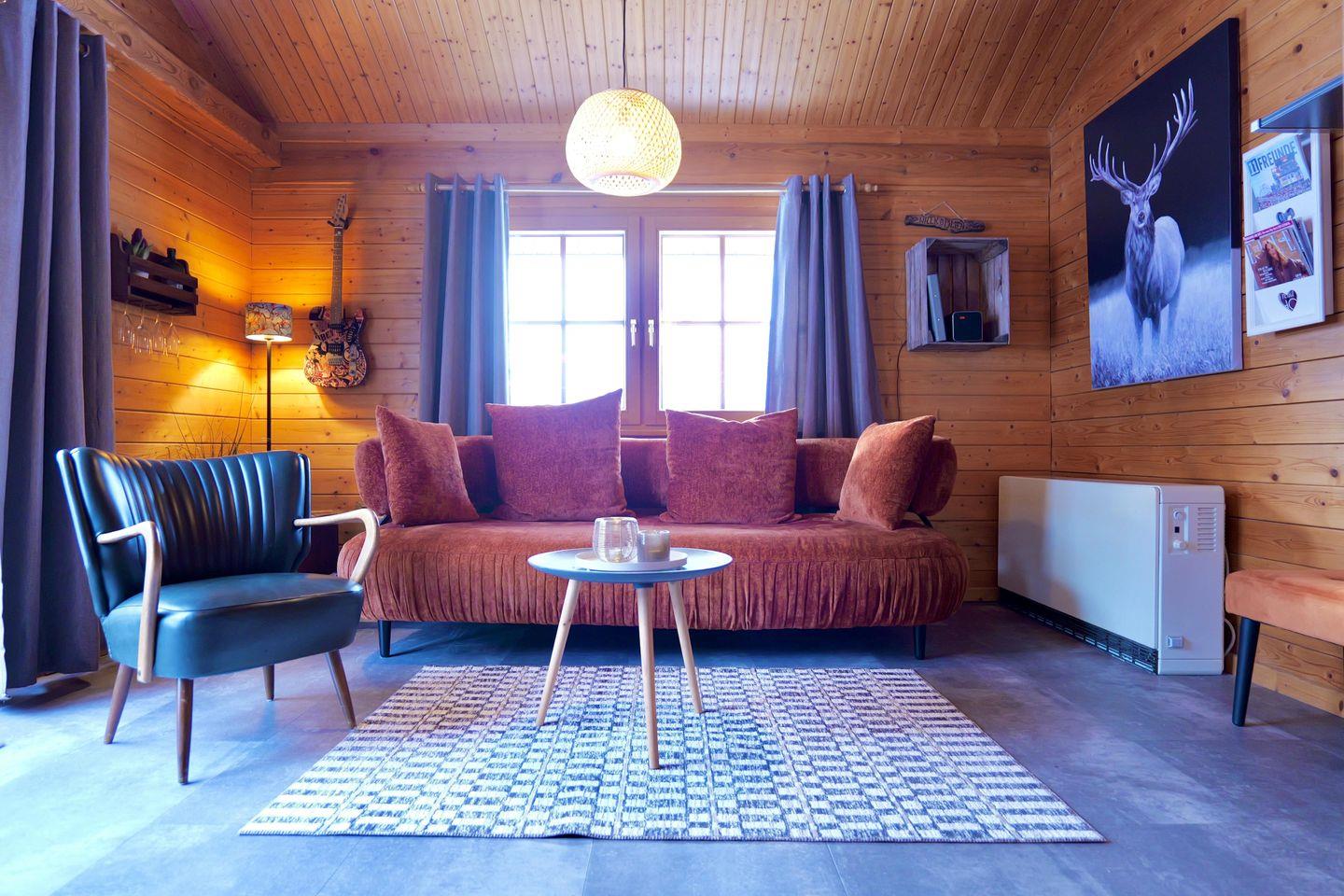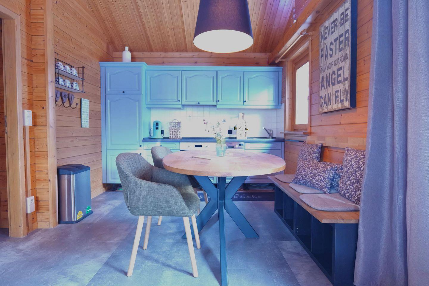 Das Ferienhaus ist liebevoll und modern eingerichtet und bietet dir den perfekten Komfort für deine Auszeit. Die großzügigen, ebenerdigen Räumlichkeiten bestehen aus einem großen Wohnbereich mit gemütlicher, hochwertiger Couchgarnitur und Essbereich, ideal für entspannte Stunden. Die komplett ausgestattete Küche lässt keine Wünsche offen und sorgt dafür, dass du dich wie zu Hause fühlst.