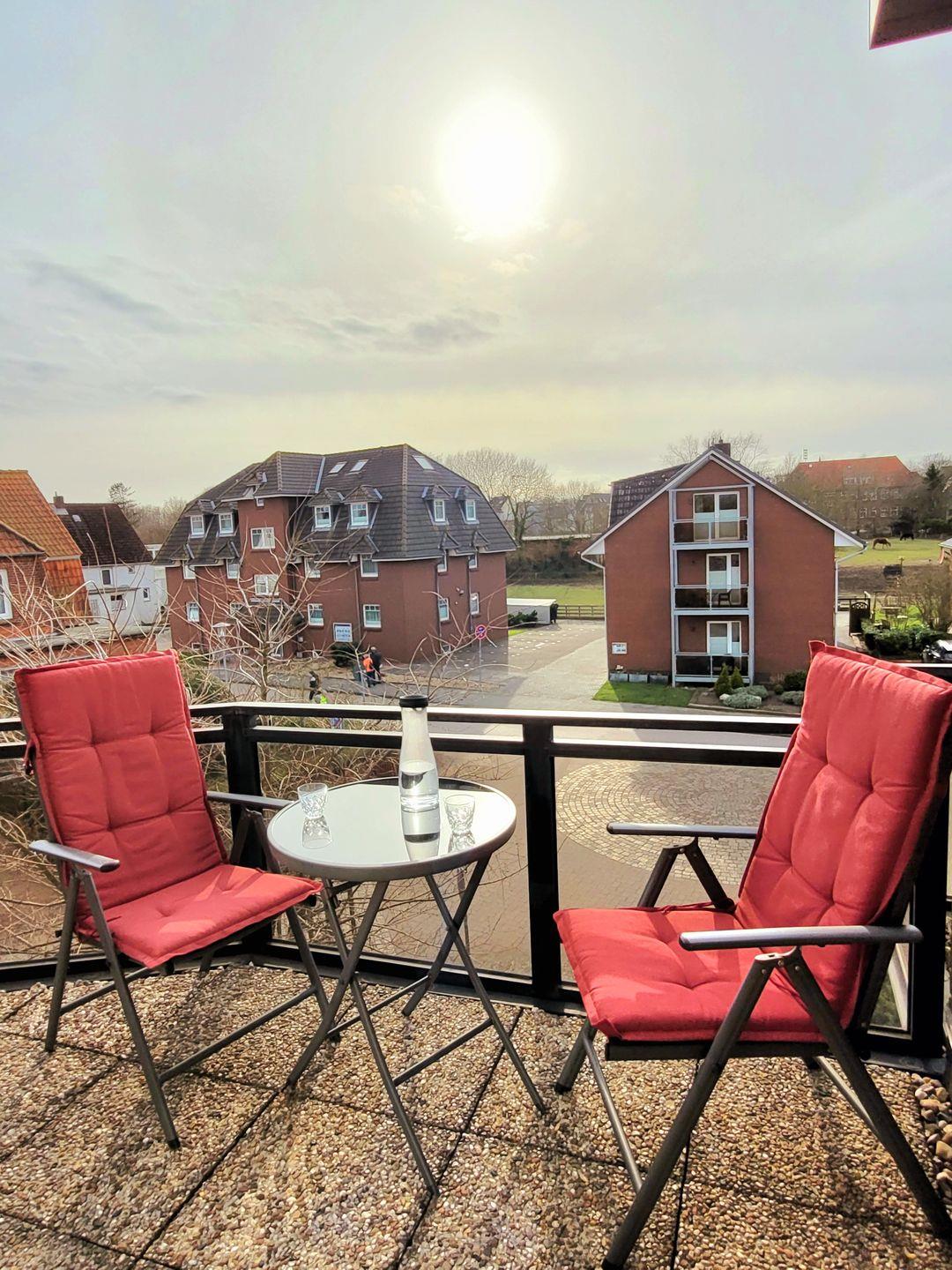 Genießen Sie die frische Nordseeluft auf dem sonnigen, vom Seewind geschütztem Süd-/Westbalkon.
