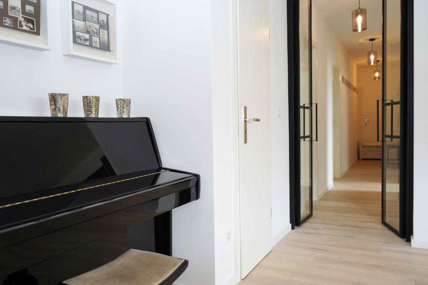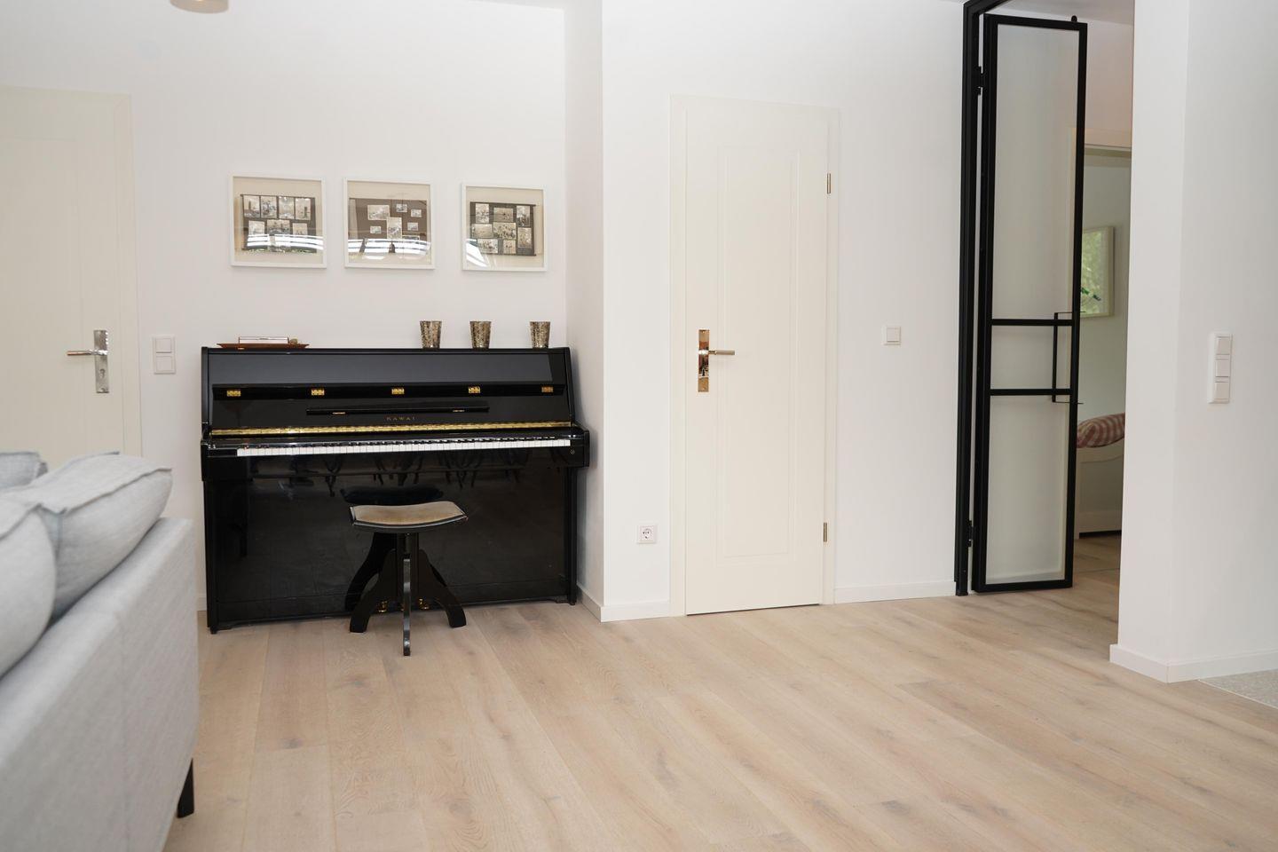 Die offene Küche ist mit allem ausgestattet, was du für einen komfortablen Aufenthalt benötigst, darunter ein Backofen, Spülmaschine, Mikrowelle, Nespresso- und Filter-Kaffeemaschine. Im Wohnzimmer findest du ein Klavier sowie SAT-TV und kostenloses WLAN für Ihre Unterhaltung.