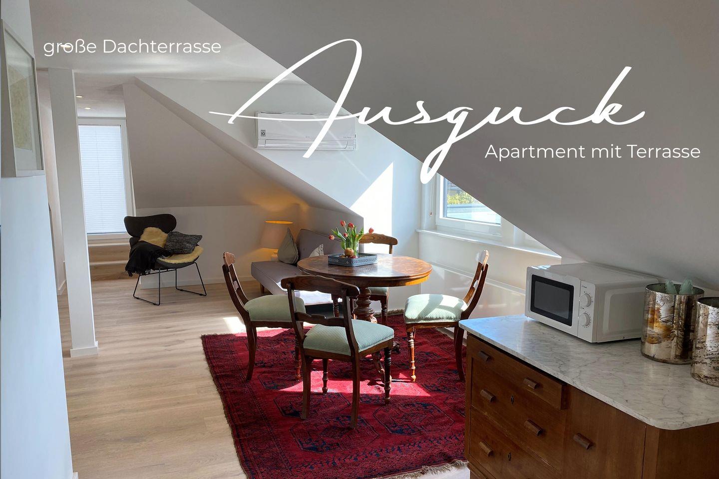 Genießen Sie entspannte Tage in unserer charmanten Dachwohnung „Ausguck“, die dir mit einer großen Terrasse und Klimaanlage einen perfekten Rückzugsort bietet. Die Wohnung ist ideal für 2 Personen und bietet einen gemütlichen Wohnbereich mit SAT-TV und kostenfreiem WLAN.