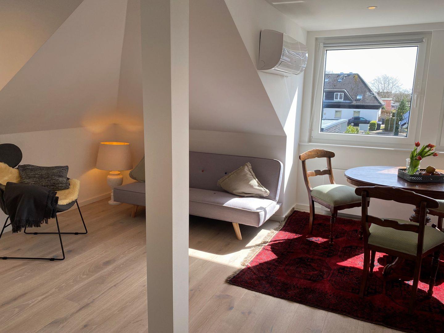 Gemütliche Dachwohnung "Ausguck" in Cuxhaven mit großer Terrasse, Sauna und moderner Ausstattung für erholsame Urlaubstage.