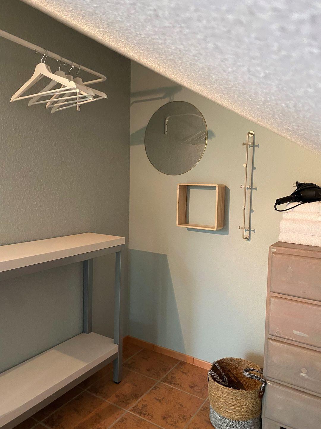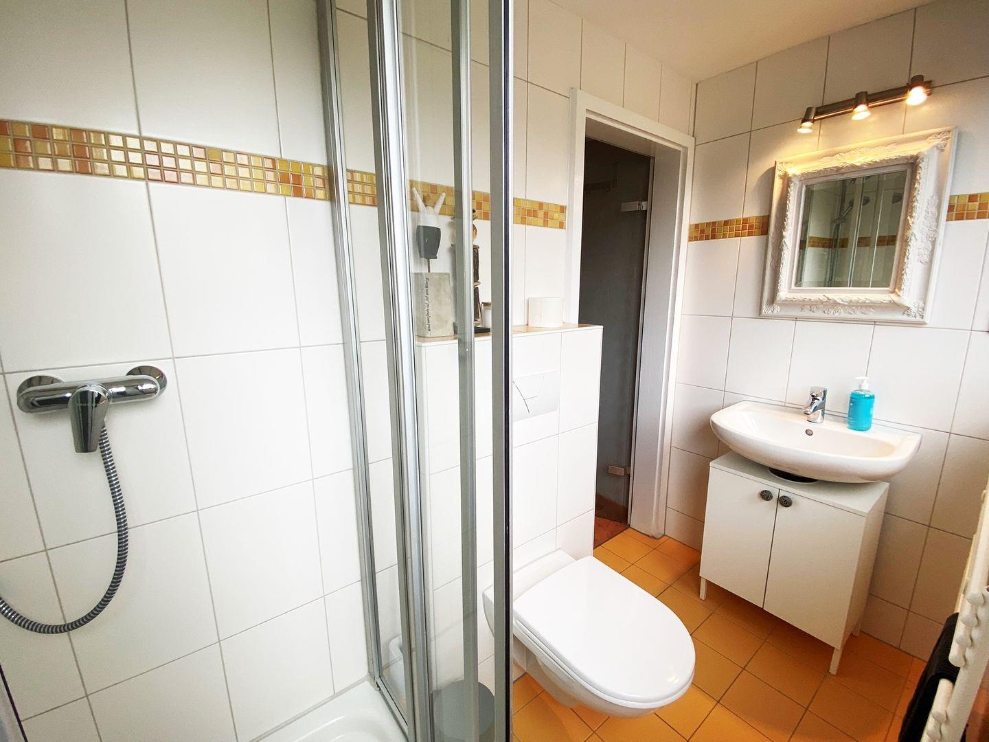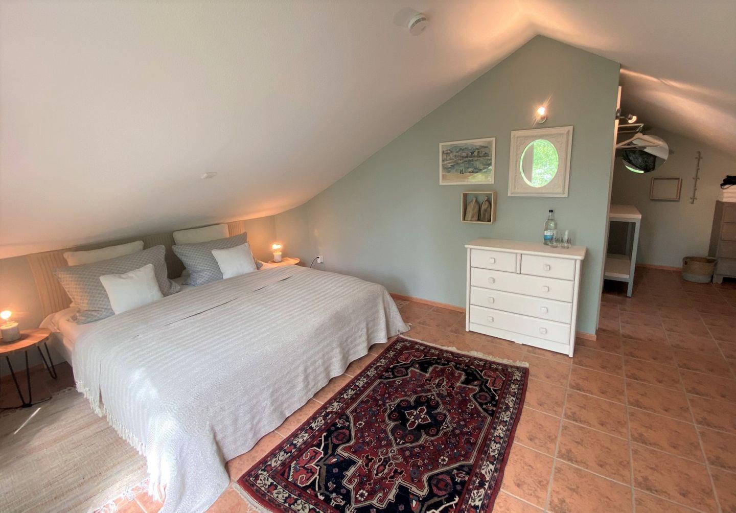 Das Schlafzimmer im Obergeschoss bietet dir ein großes Doppelbett (180 x 200) und eine entspannte Atmosphäre, um nach einem aktiven Tag in der Natur, zu entspannen. Dein Bad mit Dusche befindet sich ebenfalls im Obergeschoss und sorgt für zusätzlichen Komfort.