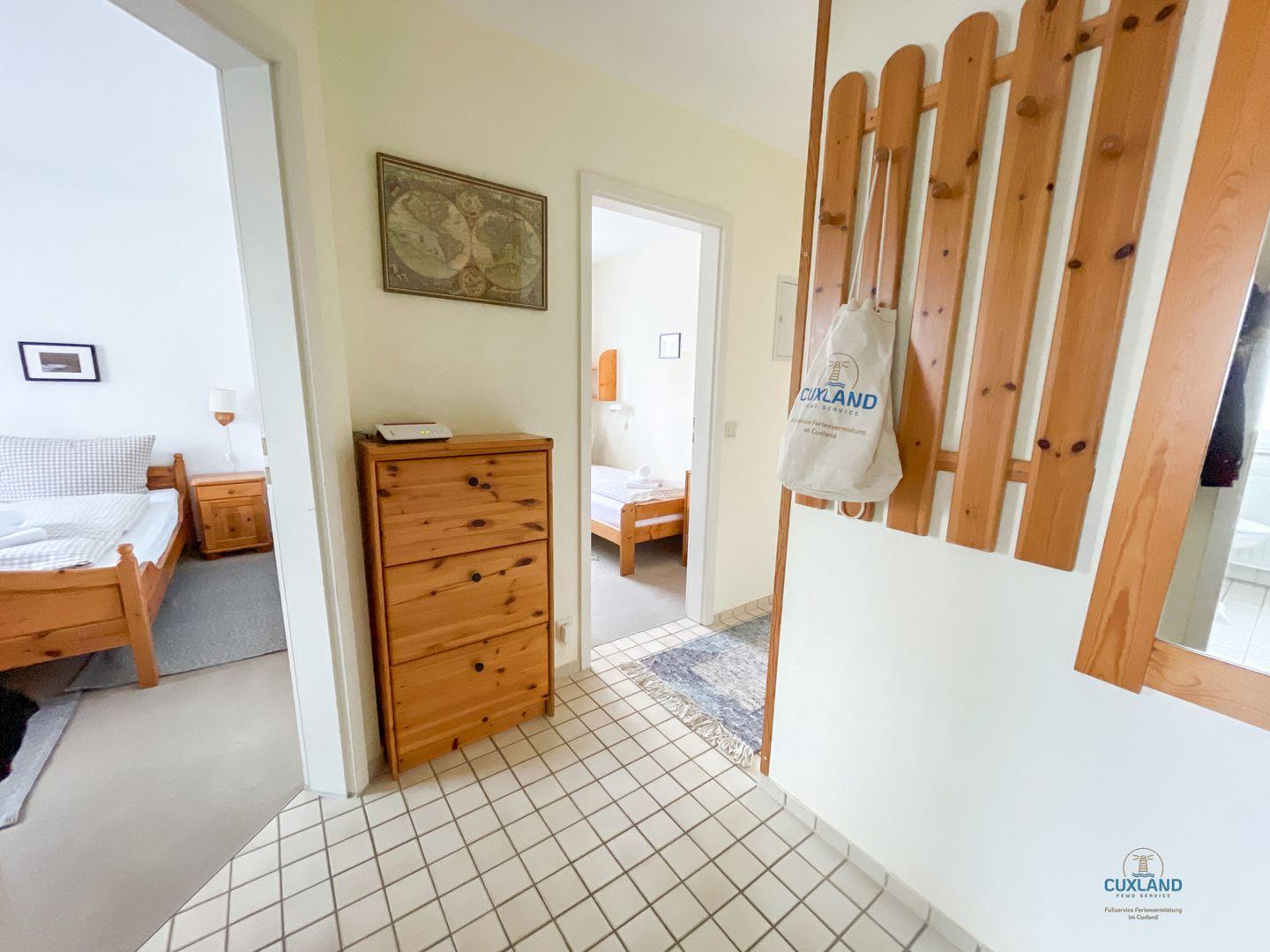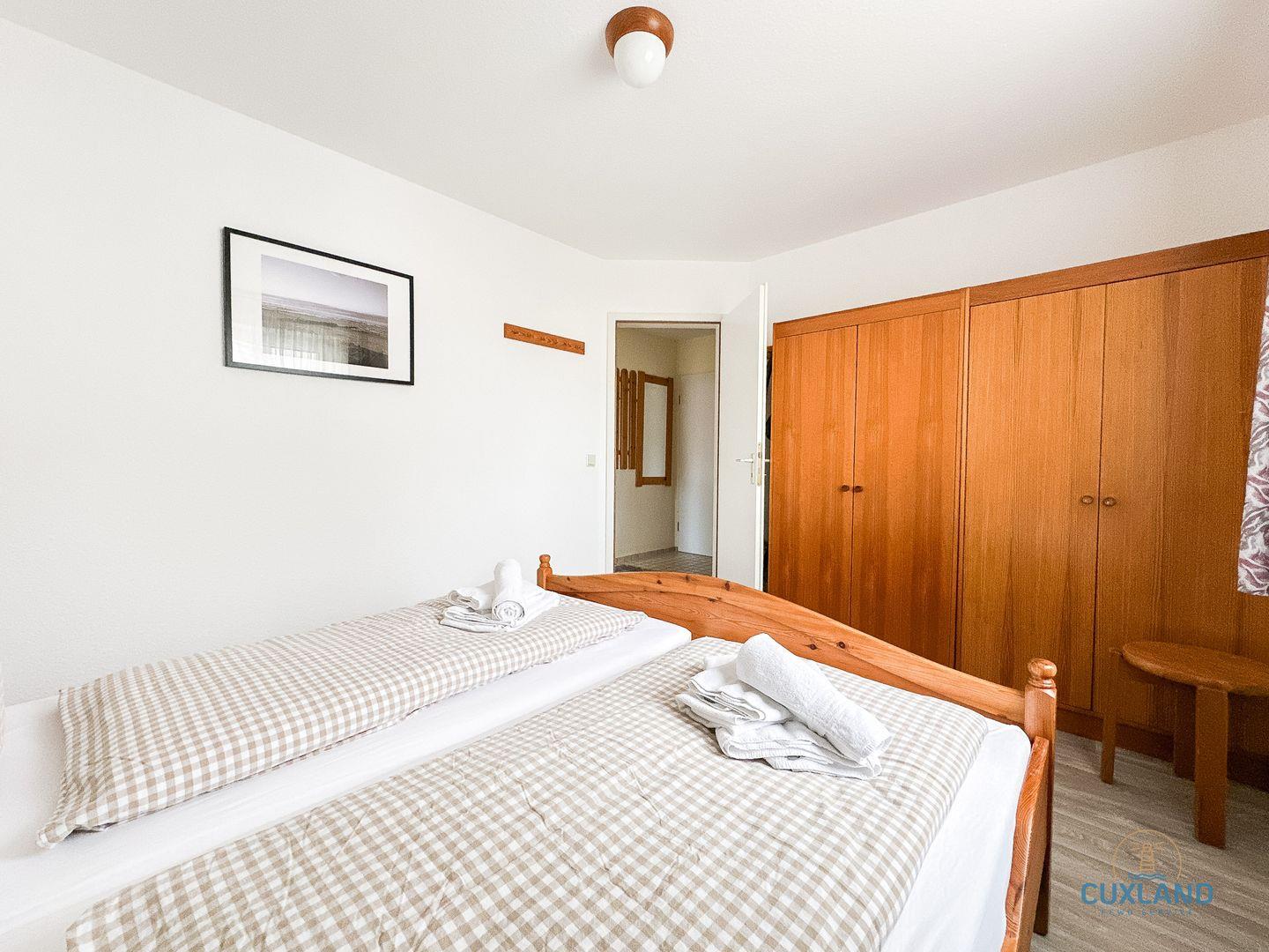 Die Ferienwohnung verfügt über zwei Schlafzimmer, die dir die nötige Ruhe für einen erholsamen Schlaf bieten. Sie sind mit Teppichboden ausgestattet und laden zum Ausruhen nach einem aufregenden Tag am Strand ein. Zusätzlich steht dir ein Badezimmer mit Dusche zur Verfügung.