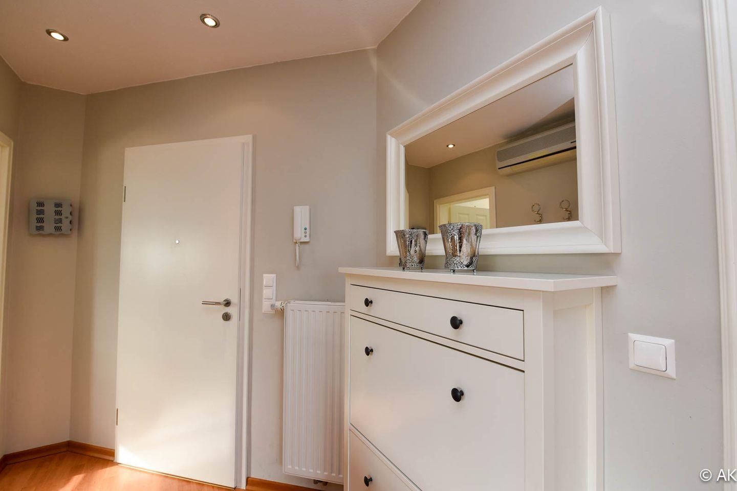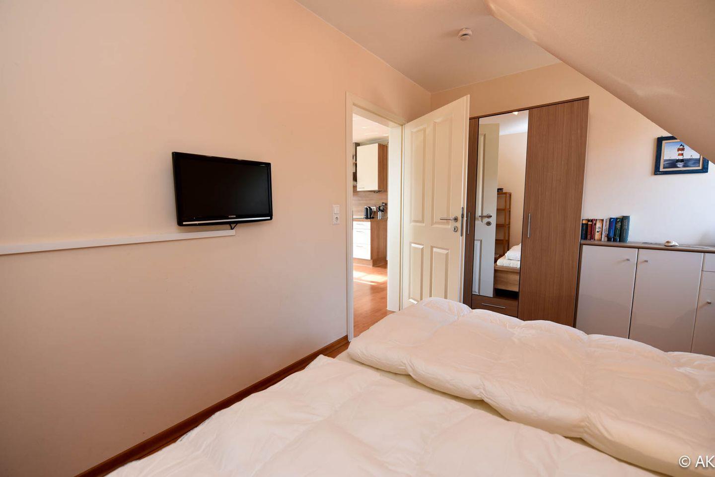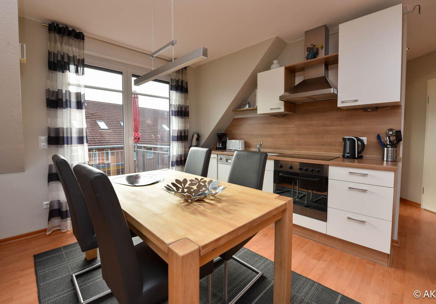 Die hochwertig ausgestattete Wohnung bietet zwei komfortable Schlafzimmer: eines mit einem bequemen Doppelbett, das andere mit einem 90 x 200 cm Einzelbett – ideal für Paare, Familien oder Alleinreisende. Die moderne Wohn-Küche lädt zum gemeinsamen Kochen und Verweilen ein, während das stilvolle Bad für zusätzlichen Komfort sorgt. Dank Fußbodenheizung genießen Sie auch an kühleren Tagen eine wohlige Wärme. Ein besonderes Highlight ist der sonnige Süd/West-Balkon, auf dem Sie die frische Nordseeluft in vollen Zügen genießen können.