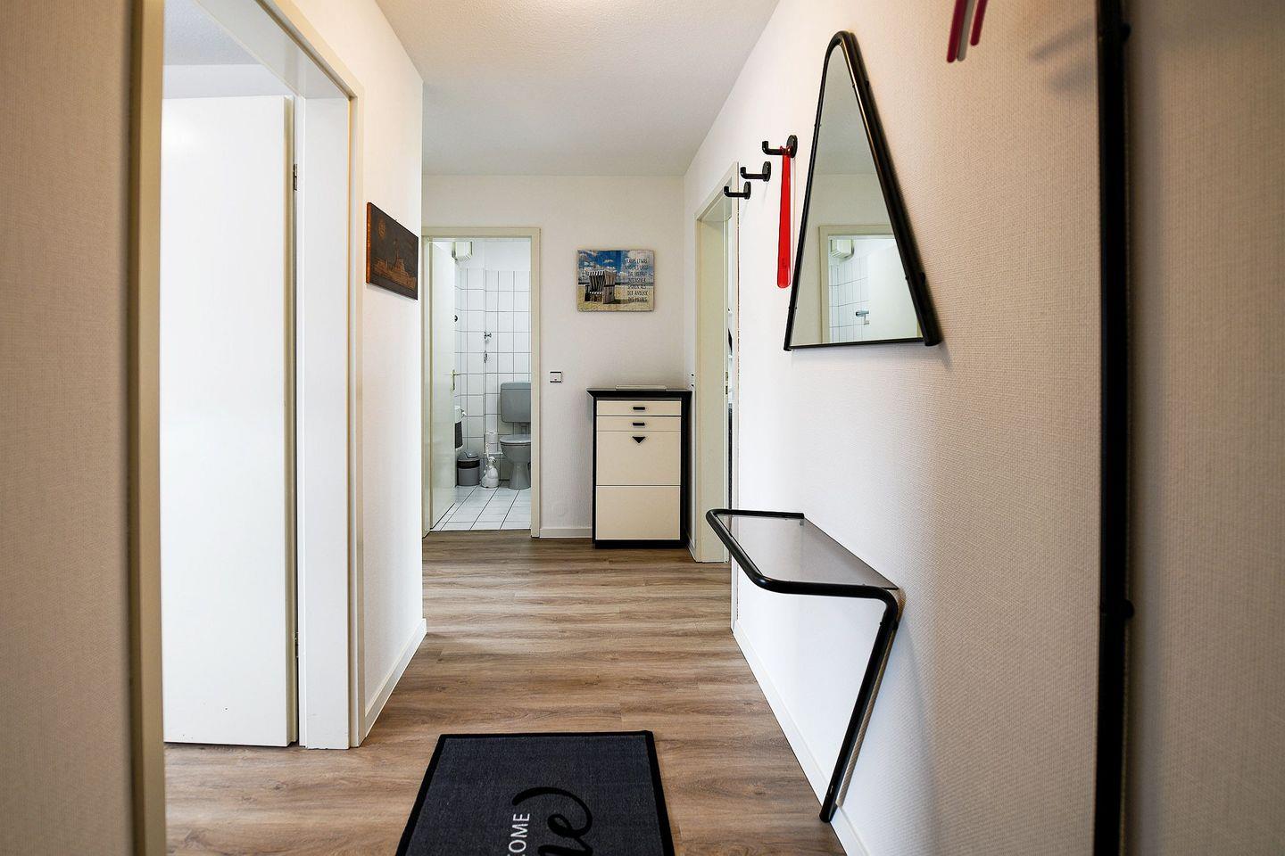 Die 55?m² große, gemütlich und modern eingerichtete Ferienwohnung für 2 Personen befindet sich in der 2. Etage (mit Aufzug) des Hauses Horizont II – direkt am Strand von Sahlenburg. Vom verglasten, überdachten Westbalkon genießen Sie einen freien Panoramablick auf die Insel Neuwerk, vorbeiziehende Schiffe und Wattwagen.