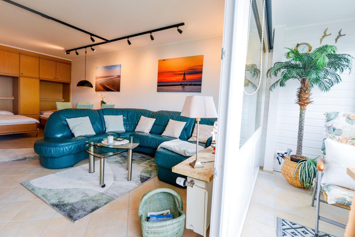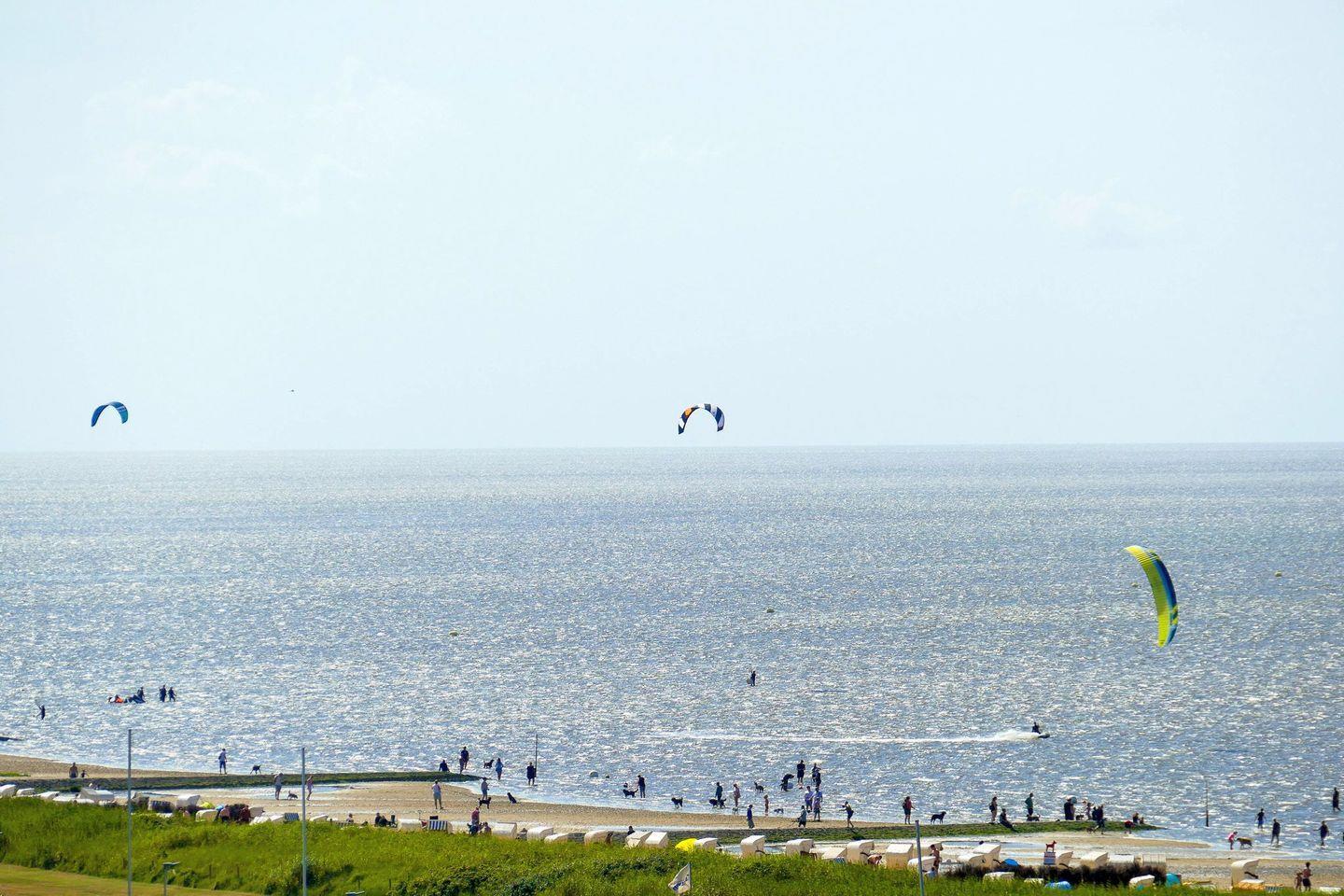 Moderne Ferienwohnung mit Meerblick, Sauna und Schwimmbad in Cuxhaven-Sahlenburg, direkt am Strand und mit Südbalkon.