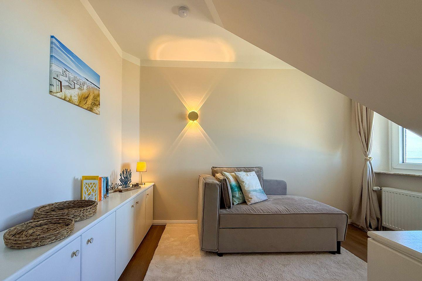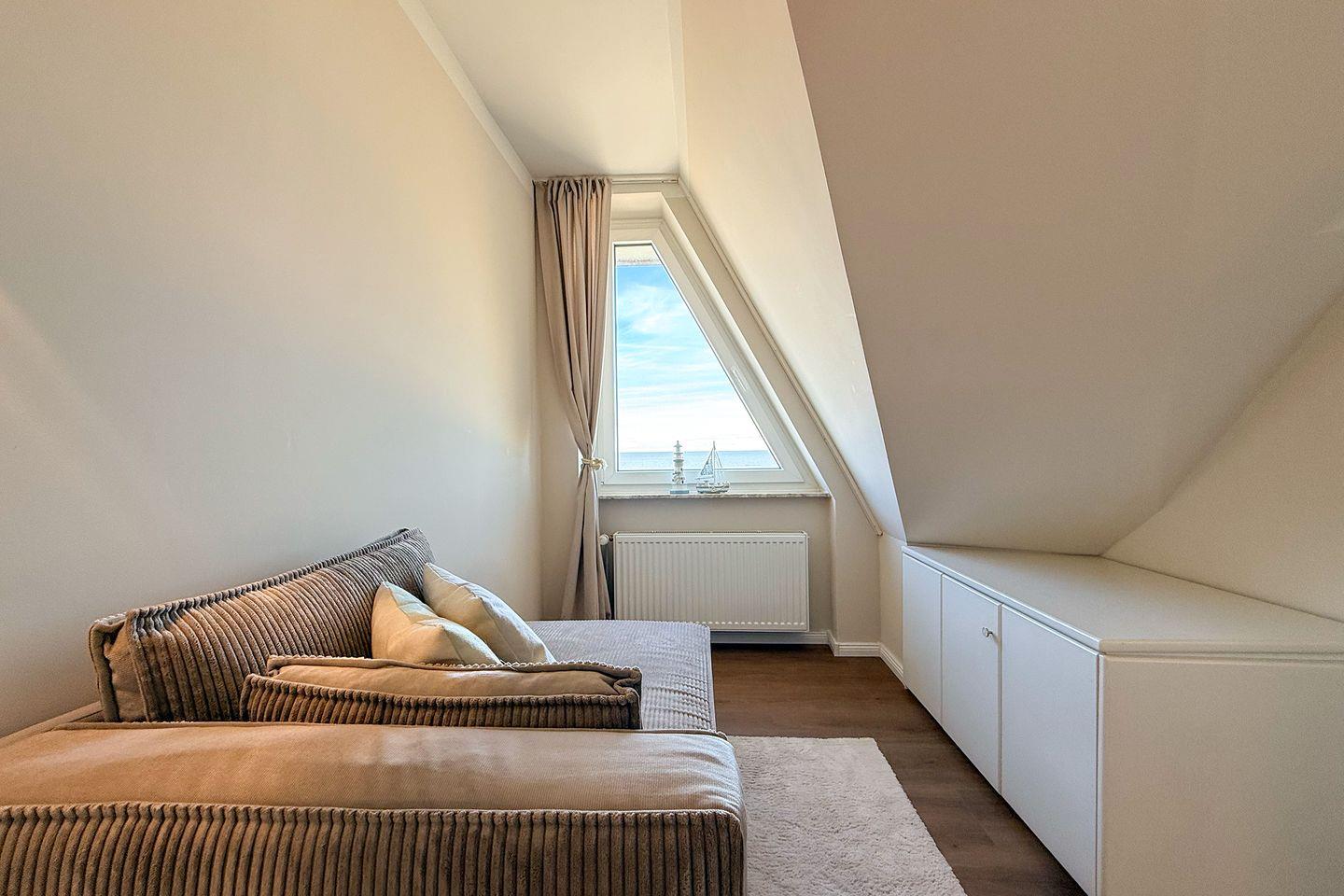 Ein weiteres Highlight der Wohnung ist der Balkon, der Ihnen einen außergewöhnlich guten Meerblick bietet. Genießen Sie die frische Nordseebrise, während Sie eine Tasse Kaffee trinken oder einfach nur die Aussicht auf den Strand und das Meer erleben. Der Strandkorb, der von Mai bis Mitte Oktober inklusive ist, lädt Sie ein, die Sonne und die maritime Atmosphäre optimal zu nutzen.