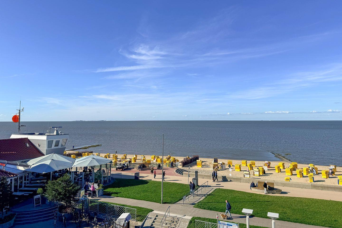 Moderne Ferienwohnung mit Balkon und Panoramablick direkt am Strand von Cuxhaven.