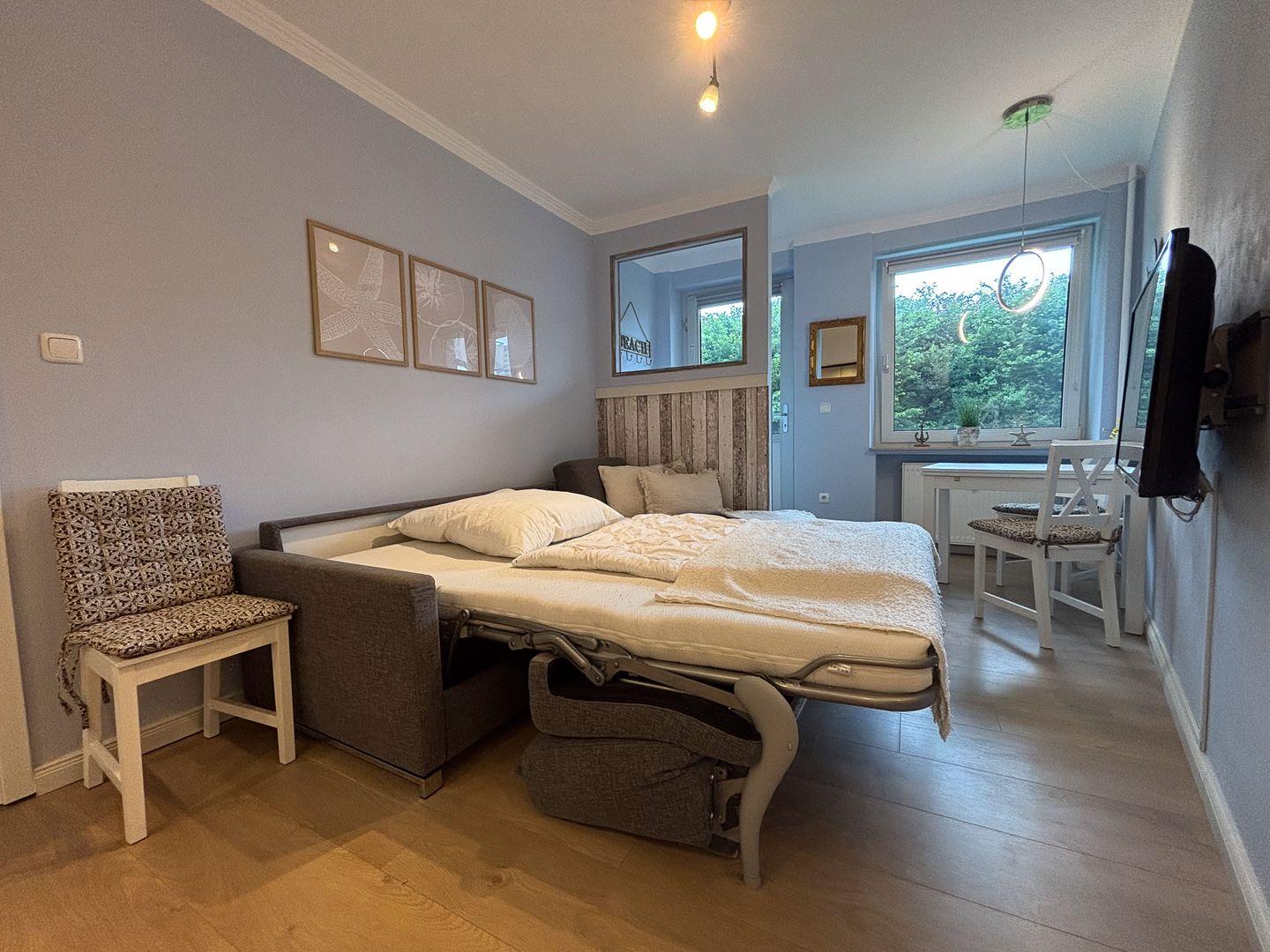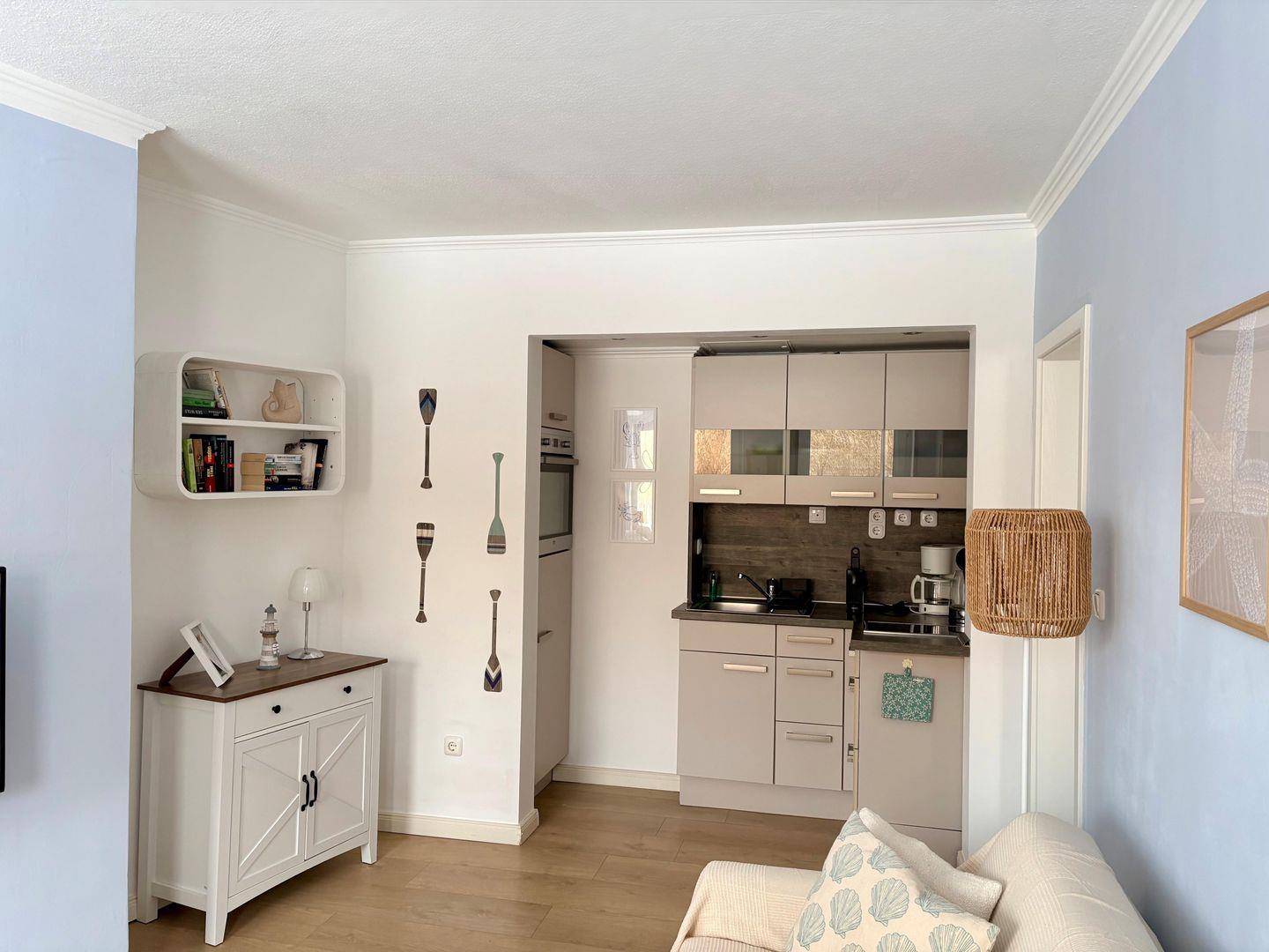Nur 300?Meter vom Strand entfernt und idyllisch im Grünen gelegen, erwartet Sie eine liebevoll eingerichtete Zwei-Zimmer-Ferienwohnung voller norddeutschem Charme, Ruhe und Gemütlichkeit. Der perfekte Rückzugsort – ob allein, zu zweit oder mit Kind.