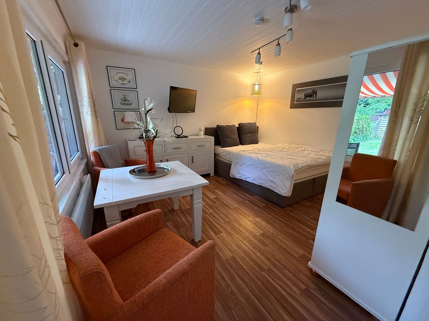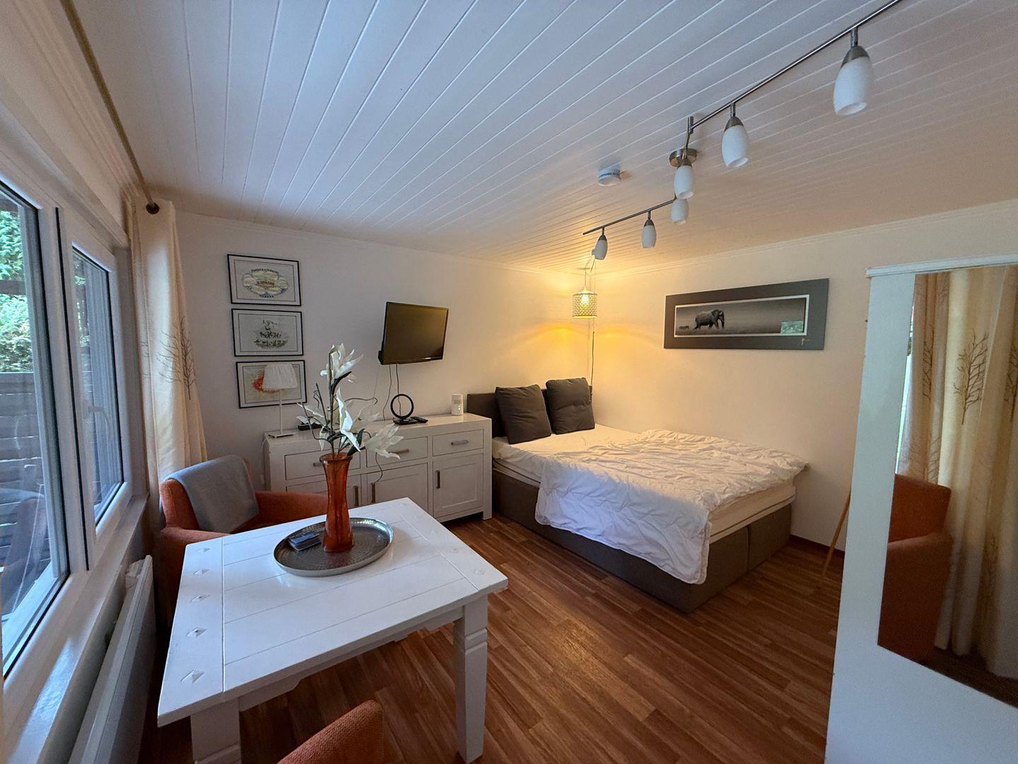 Gemütliches freistehendes Gartenhaus in Cuxhaven-Duhnen, 200 m vom Strand, mit Terrasse, WLAN und privatem Parkplatz.