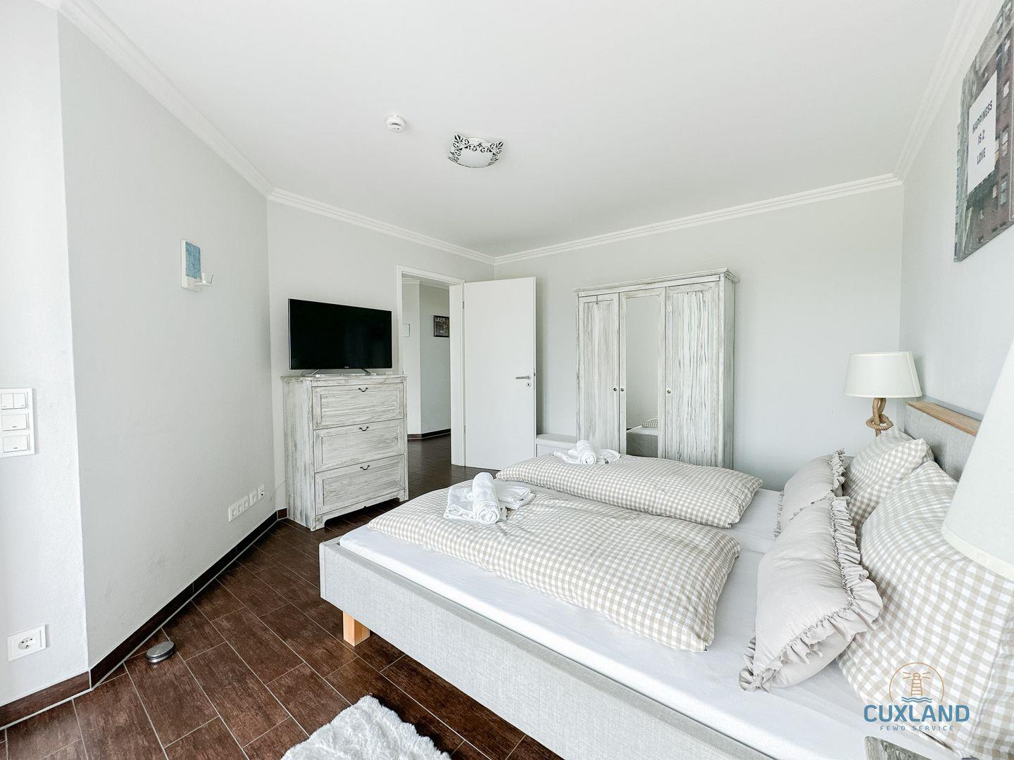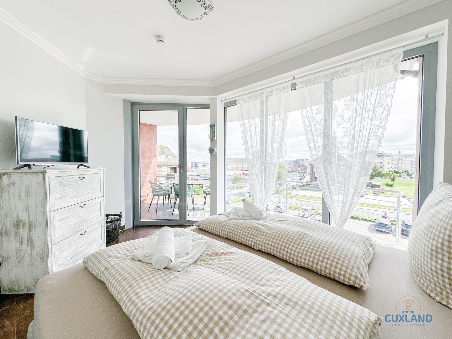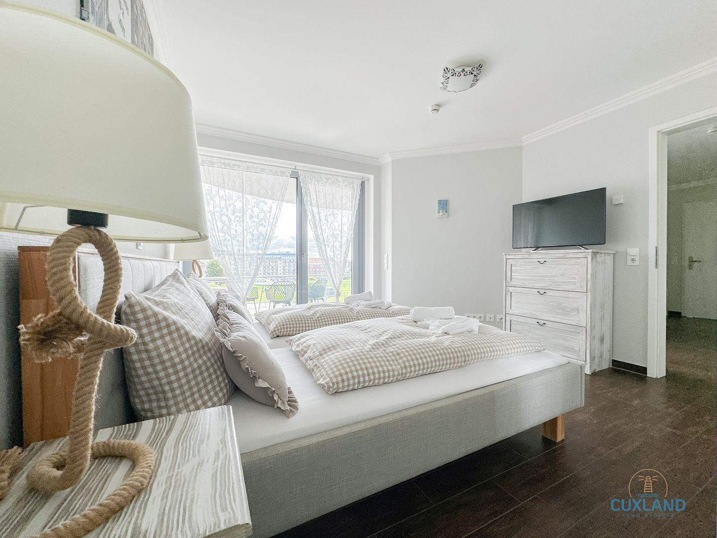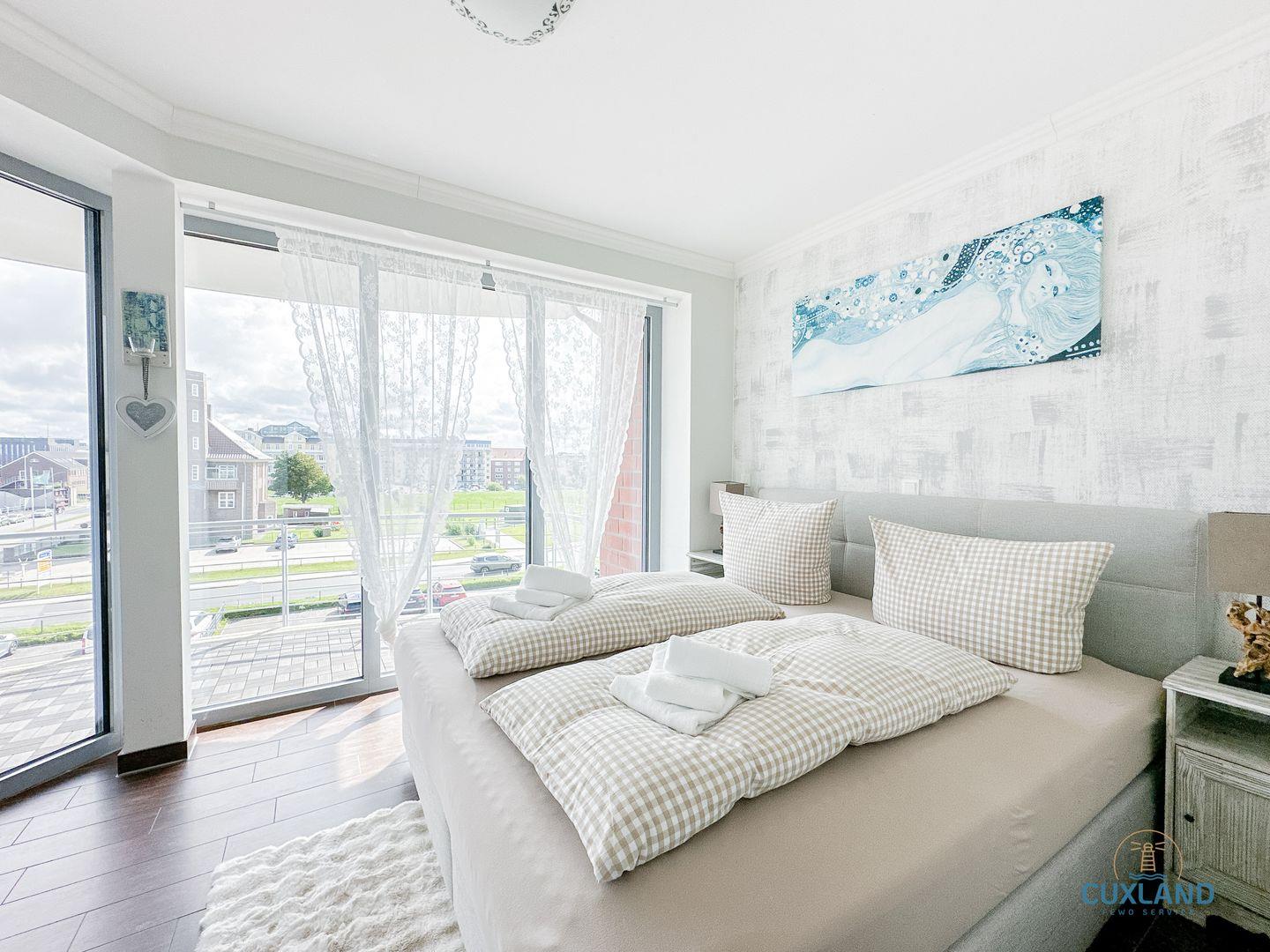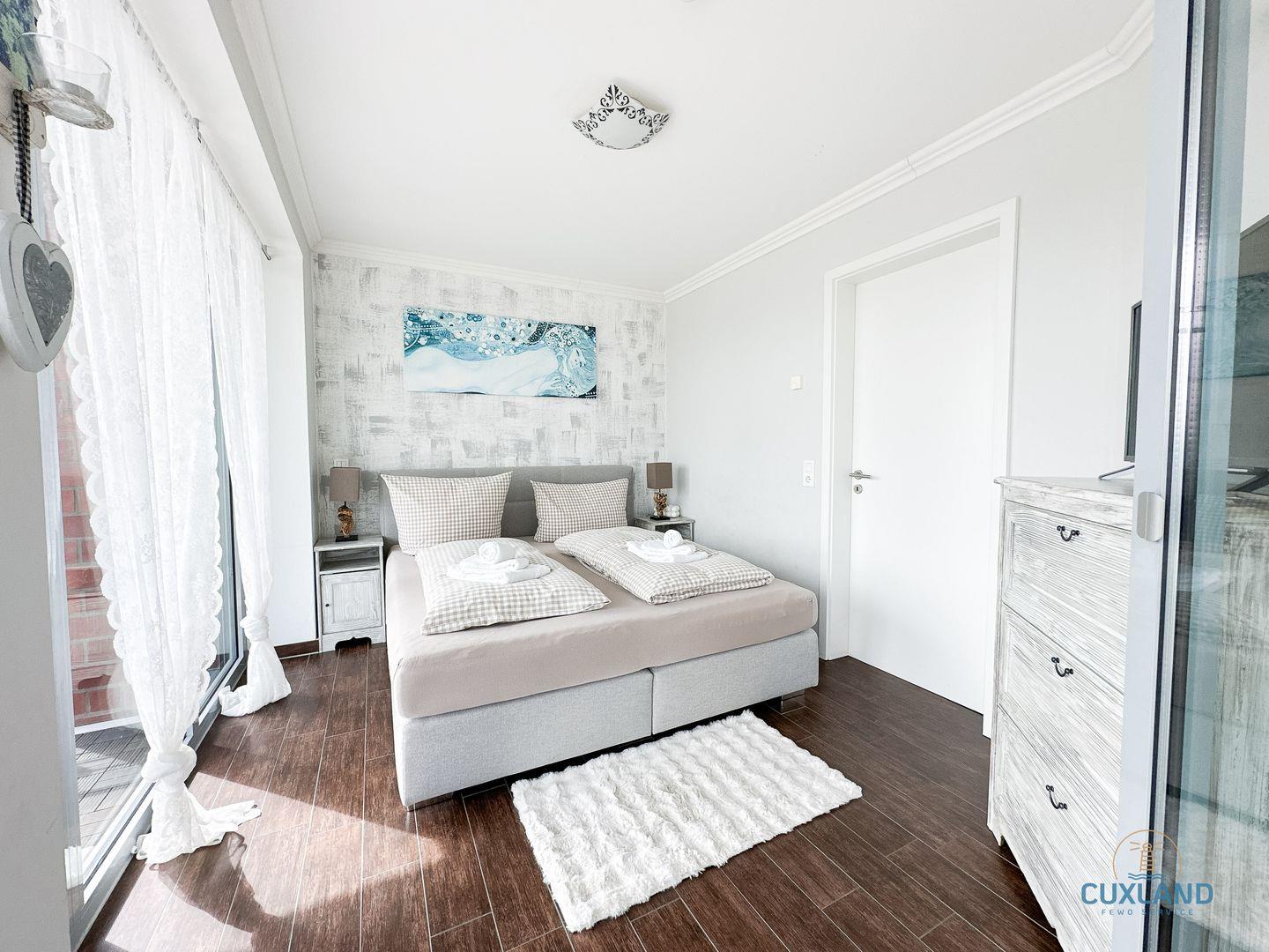 Exklusive Ferienwohnung in Cuxhaven mit Meerblick, zwei Schlafzimmern und direktem Zugang zum Strand.
