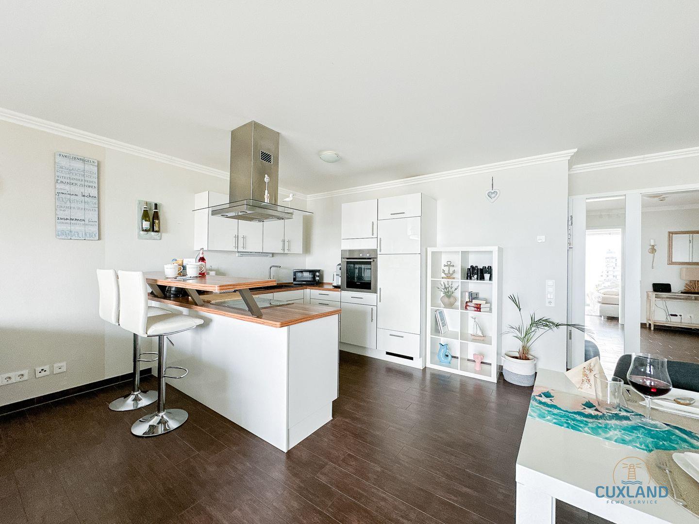 - Offene, voll ausgestattete Küche mit: