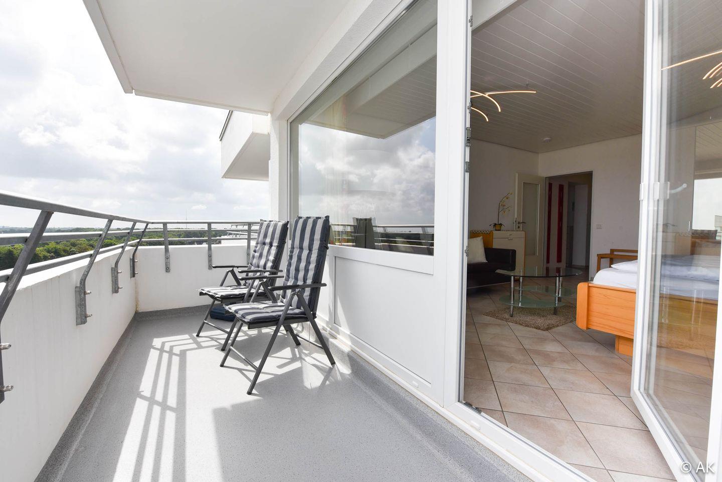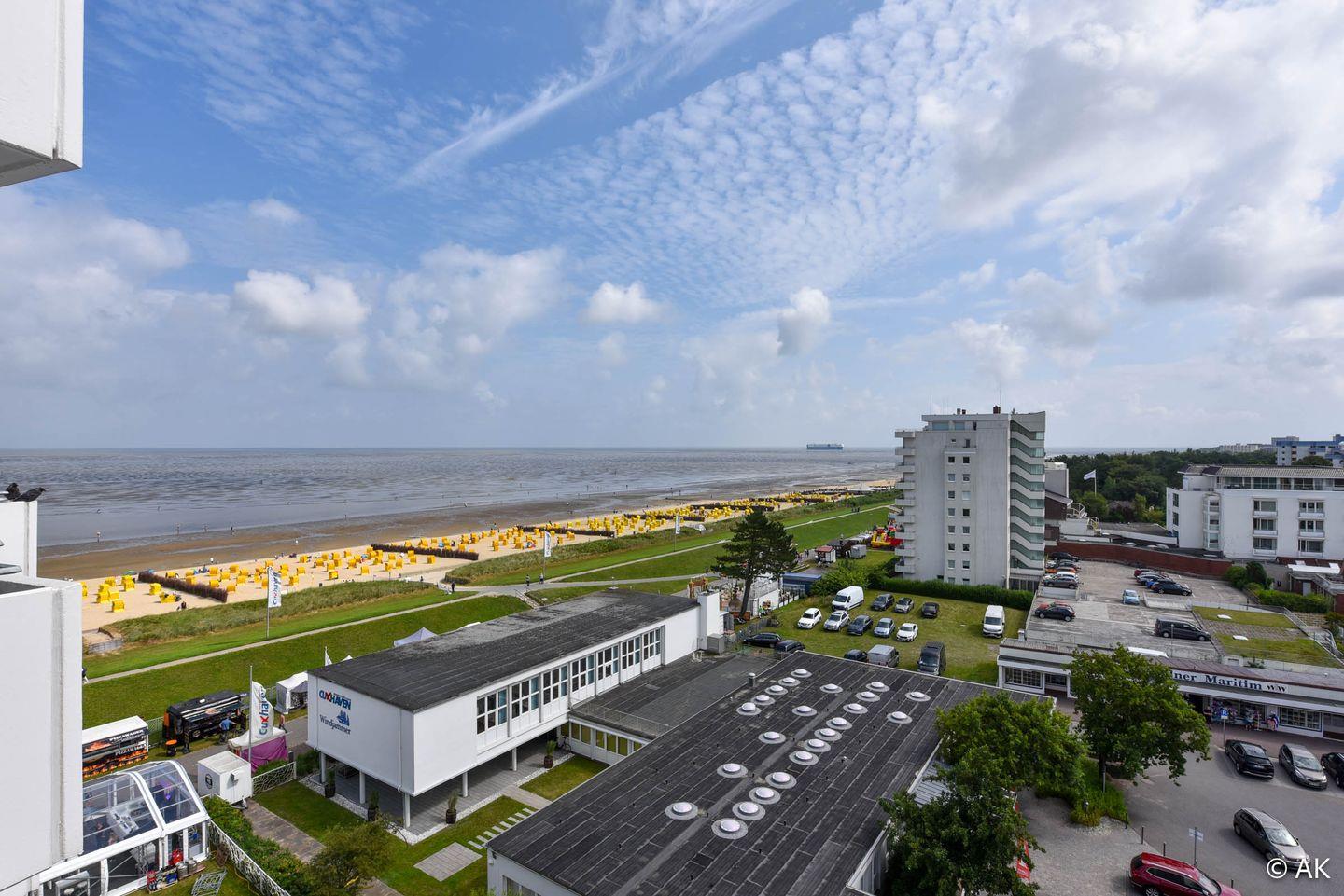 Ferienwohnung im 8. Stock des Haus Hanseatic in Duhnen für bis zu 4 Personen. Mit zwei Balkonen und traumhafter Seesicht, moderner Küche, Schwimmbad, Sauna, WLAN und direktem Strandzugang.