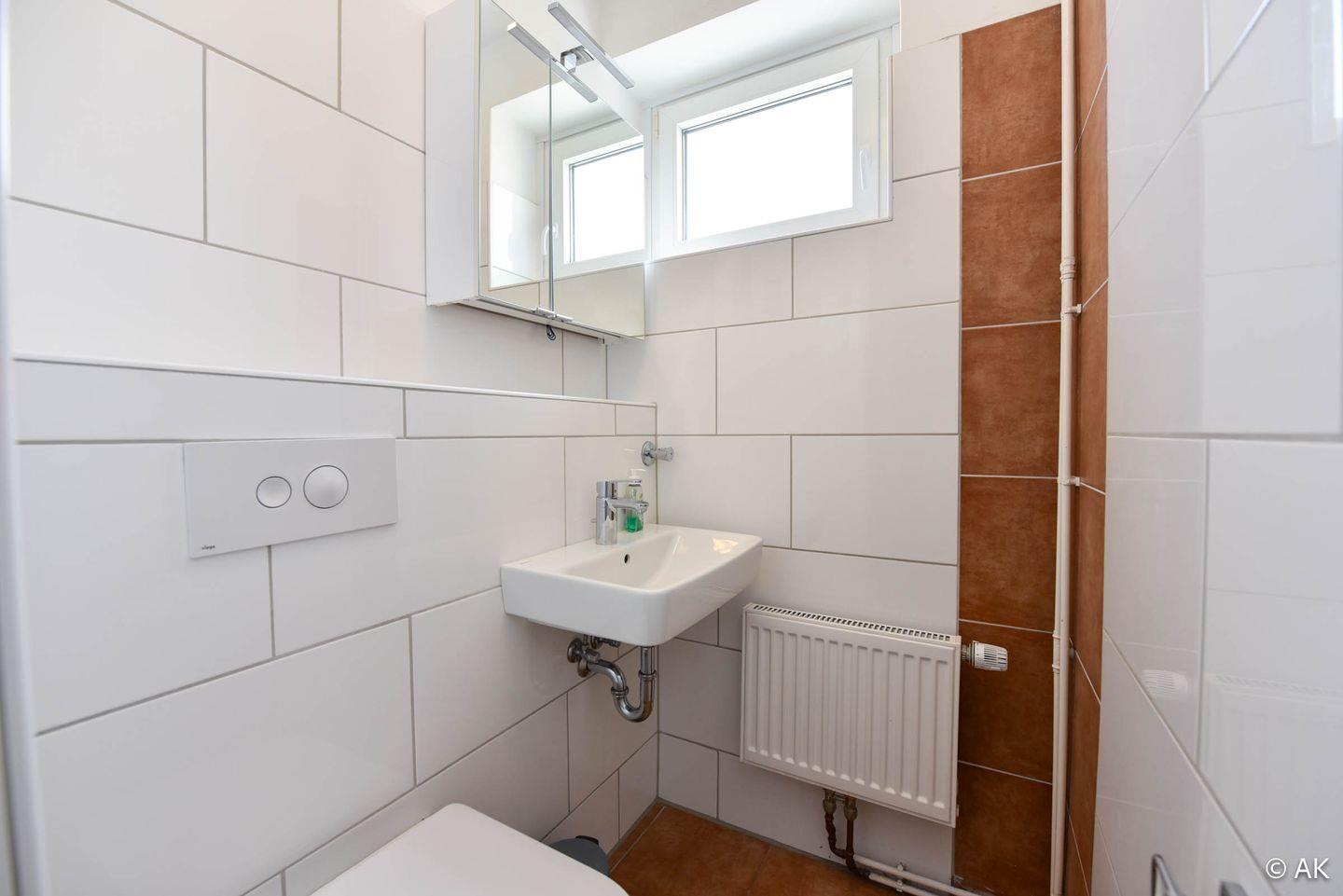 Die Wohnung ist ideal für bis zu drei Personen geeignet und verfügt über einen kombinierten Wohn-, Ess- und Küchenbereich sowie zwei separate Schlafbereiche. Das Hauptschlafzimmer ist mit einem Doppelbett ausgestattet. Der zweite Schlafbereich verfügt über ein Einzelbett und bietet Zugang zu einem kleinen Ostbalkon – ideal für die Morgensonne. Das Badezimmer ist mit Dusche und WC funktional eingerichtet.