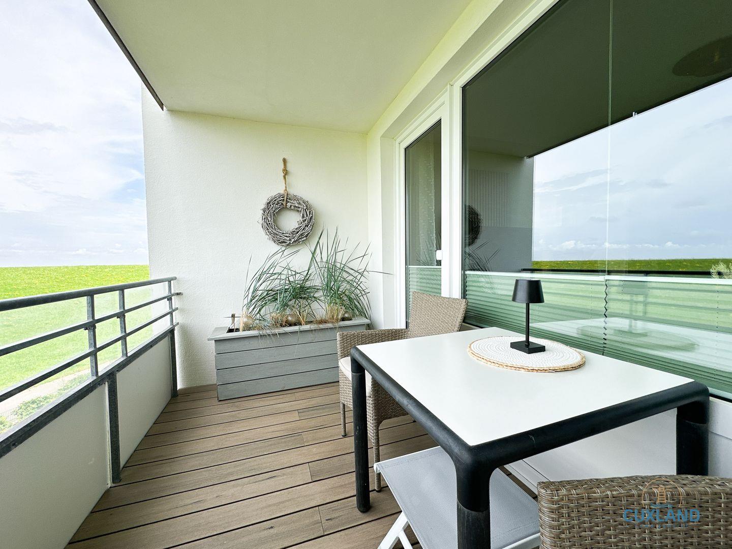 Komfortables Ferienapartment HyggeZeit in Cuxhaven mit überdachtem Balkon und herrlichem Meerblick.