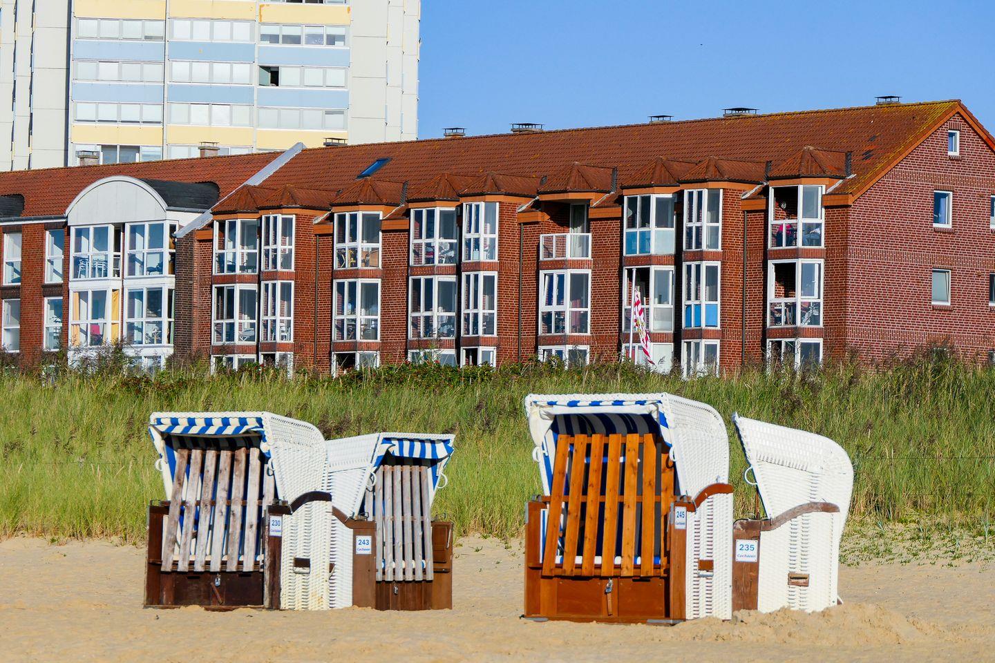 In der zweiten Etage gelegen, bietet die Wohnung vom verglasten Westbalkon, der sich öffnen lässt, einen freien Blick auf die Nordsee – ein Logenplatz mit Meerblick.