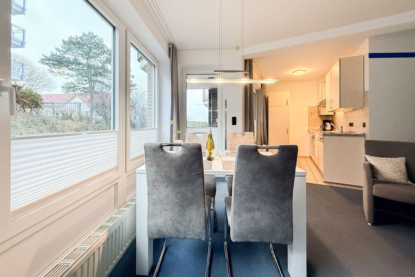 Ein echtes Highlight ist der überdachte Balkon – hier kannst Du auch bei norddeutschem Wetter die frische Meeresluft genießen. Deinen Pkw parkst Du bequem auf dem zur Wohnung gehörenden Privatstellplatz.
