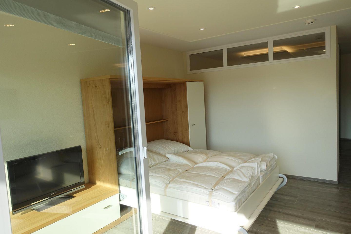 im Wohnraum ein Doppelschrankbett für 2 Personen.