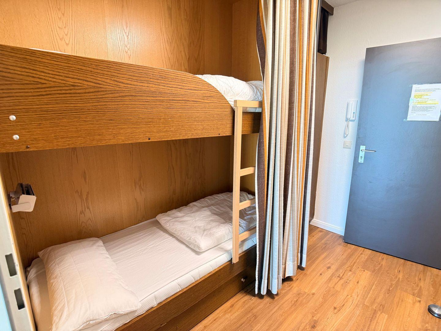 Sie ist geeignet für 2 - 4 Personen. Im Wohnraum befindet sich ein Doppel Schrankbett