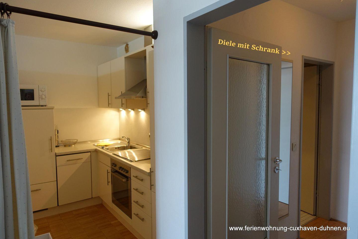 Die Ferienwohnung Nr.73 (5.OG, 58qm) mit Blick auf die Insel Neuwerk ist für 4 Personen eingerichtet. Von Eingang / Diele kommen Sie rechts ins Duschbad und gerade aus in den abgeteilten Wohnbereich. Rechts sehen Sie zuerst die Küche, die mit allem notwendigen eingerichtet ist auch Geschirrspüler. Weiter rechts ist der abgetrennte Schlafraum mit Trennschiebevorhängen und mit 2 Einzelbetten 0,90 X 2,00 m, die man auch zusammen schieben kann. Danach kommt der Wohnbereich, mit Sofa, kleinem Tisch und einem Sessel einen großen Esstisch mit Eckbank und großen LCD TV. Hier steht noch ein Doppel Schrankbett. Radio und WLAN sind auch vorhanden.