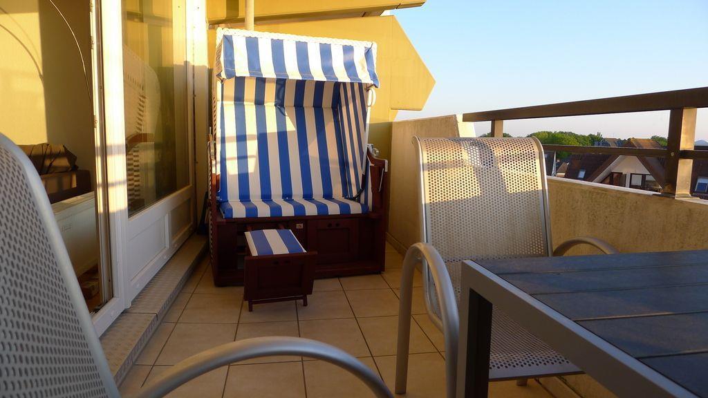Auf dem Balkon steht ein Strandkorb aus dem Sie die Sonnenuntergang genießen können. Sitzgruppe, alle Betten und diverse Sachen sind im Februar 21 erneuert worden.