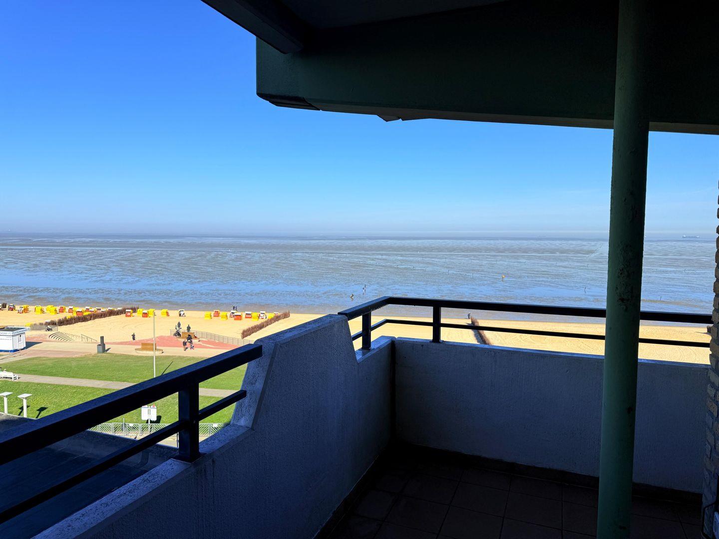 Moderne Ferienwohnung mit Meerblick, Balkon, Sauna und Pool in Cuxhaven, nahe Strand und Einkaufsmöglichkeiten.