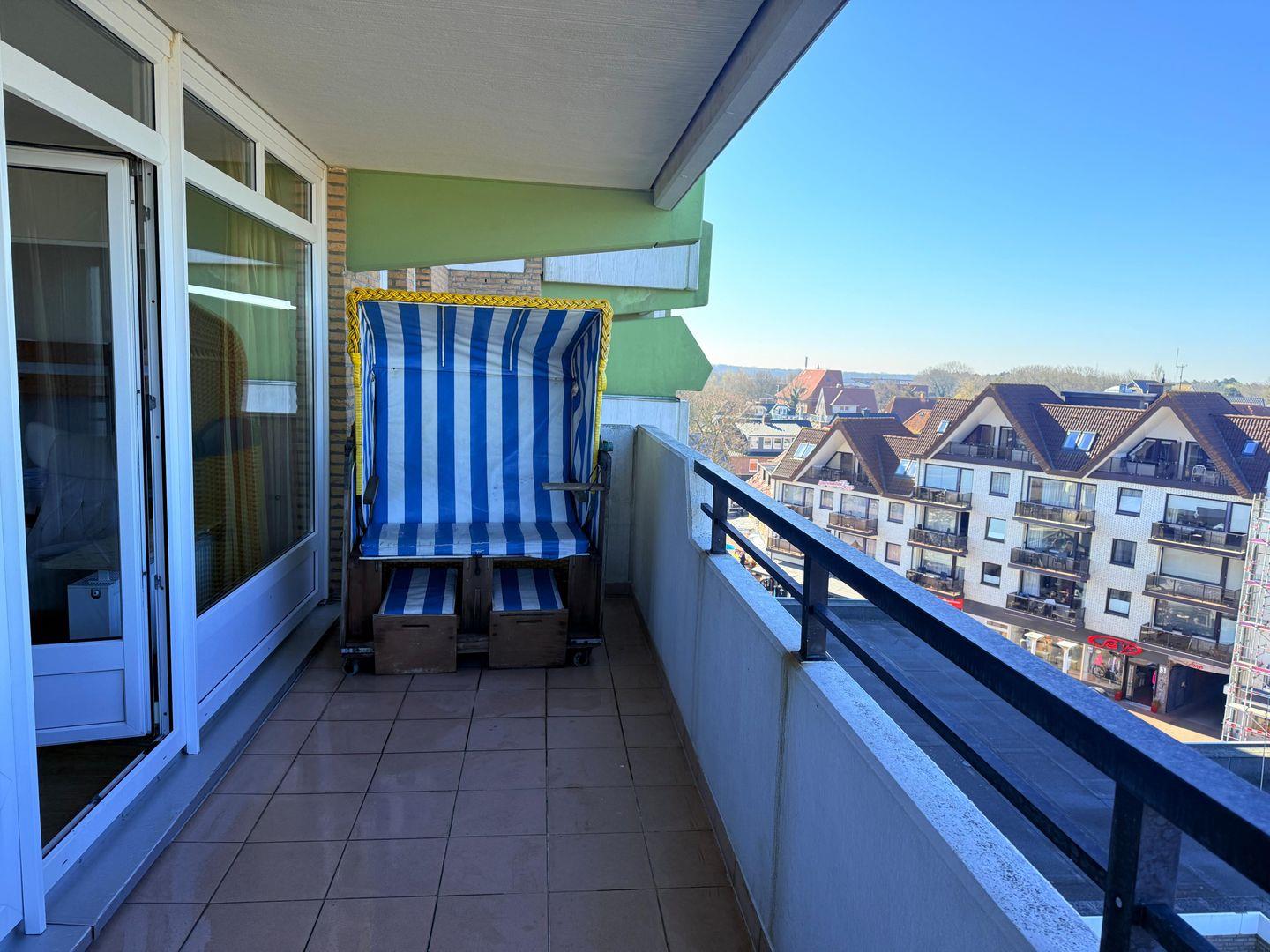 Die Ferienwohnung Panorama Whg 76 im 5. Obergeschoss bietet auf 70 m² einen außergewöhnlichen Meerblick, einen überdachten Balkon und umfangreiche Ausstattung: Offene Küche mit Spülmaschine, Bad mit Badewanne, WLAN, TV, Indoor-Pool, Sauna, Solarium, Waschmaschine sowie einen eigenen Garagenstellplatz. Strand und Einkaufsmöglichkeiten sind in direkter Nähe.