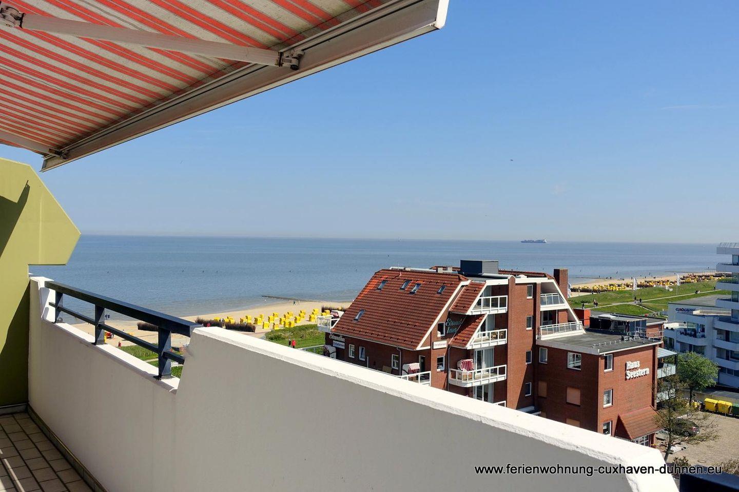 Moderne Ferienwohnung mit Balkon und Meerblick in Cuxhaven-Duhnen, ideal für bis zu vier Personen.