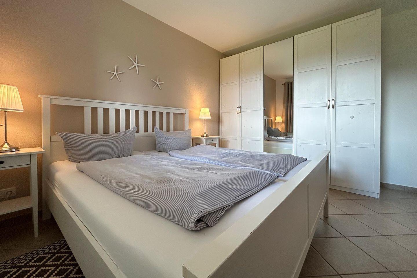 Die barrierefrei zugängliche Ferienwohnung ist mit teilüberdachter Terrasse und insgesamt 80 qm Wohnfläche für bis zu 4 Personen geeignet. Die Schlafräume sind sehr geschmackvoll eingerichtet und dekoriert, die moderne Küche mit kleinem Essplatz ist für die Verköstigung im Urlaub umfassend ausgestattet.