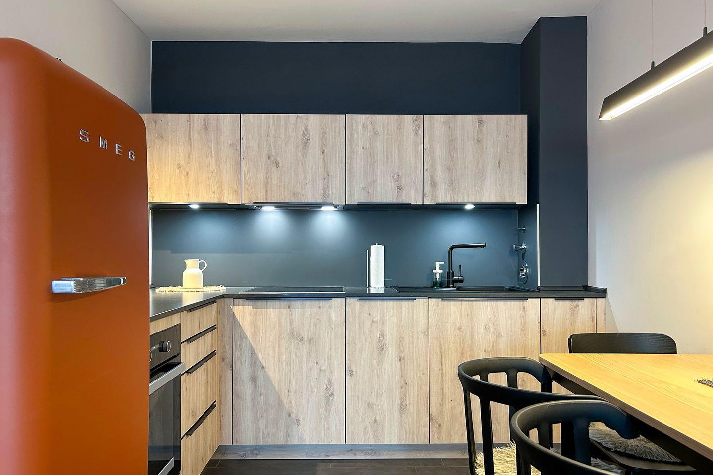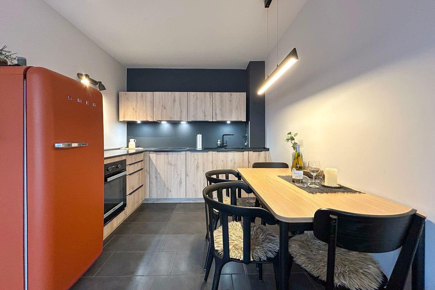 Die offene Küche, die in den Wohnraum integriert ist, verfügt über vielfältige Annehmlichkeiten. Sie ist ausgestattet mit einem Ceran-Kochfeld, Backofen mit Elektroanschluss, Spülmaschine, Kühlschrank samt Gefrierfach, Kaffeemaschine, Toaster, Mixer, Wasserkocher sowie umfangreichen Küchenutensilien, Geschirr und Besteck. Damit sind Sie optimal vorbereitet, um gemeinsam zu kochen und sich kulinarisch zu versorgen.