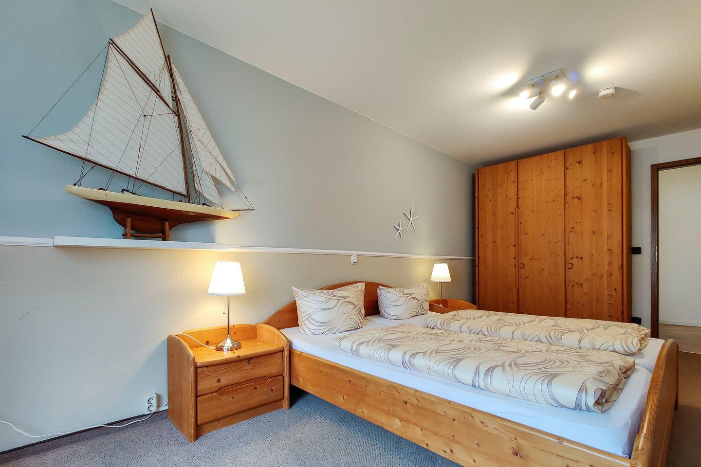 Vom großzügigen Wohnraum mit Komfortküche und großem, gemütlichen Essplatz sowie Wohnbereich mit zwei Sofas, eines davon mit Schlaffunktion, genießen Sie den Blick auf die Nordsee. Der Balkon ist sowohl vom Wohnzimmer als auch vom großen Schlafzimmer aus zugänglich. Das zweite Schlafzimmer ist mit einem Einzelbett und einem Schlafsessel ausgestattet.