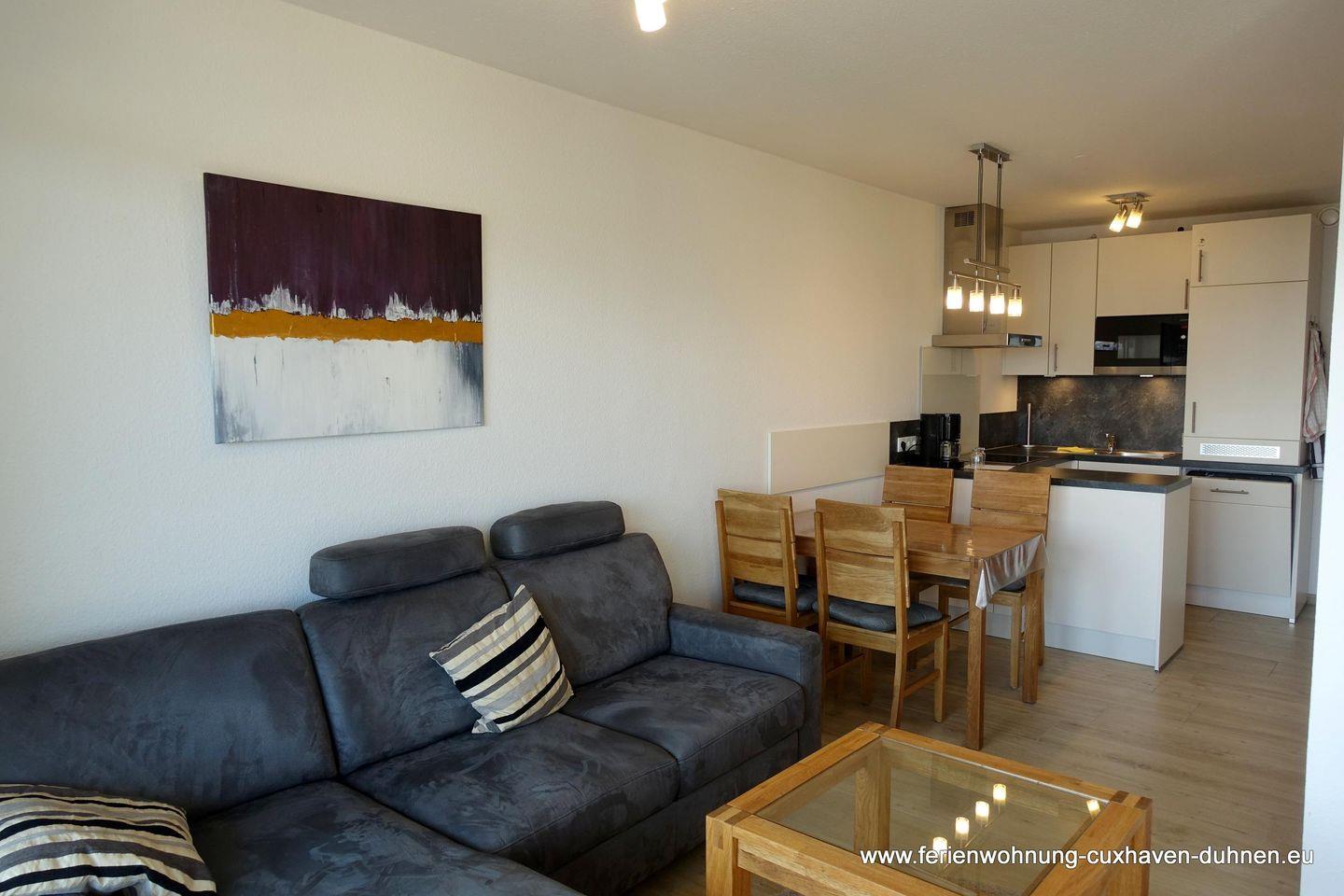 Die modern eingerichtete Wohnung Nr.81 (49qm) liegt im 5.OG mit Blick zur Elbmündung und ist für max. 4 Personen ausgelegt.