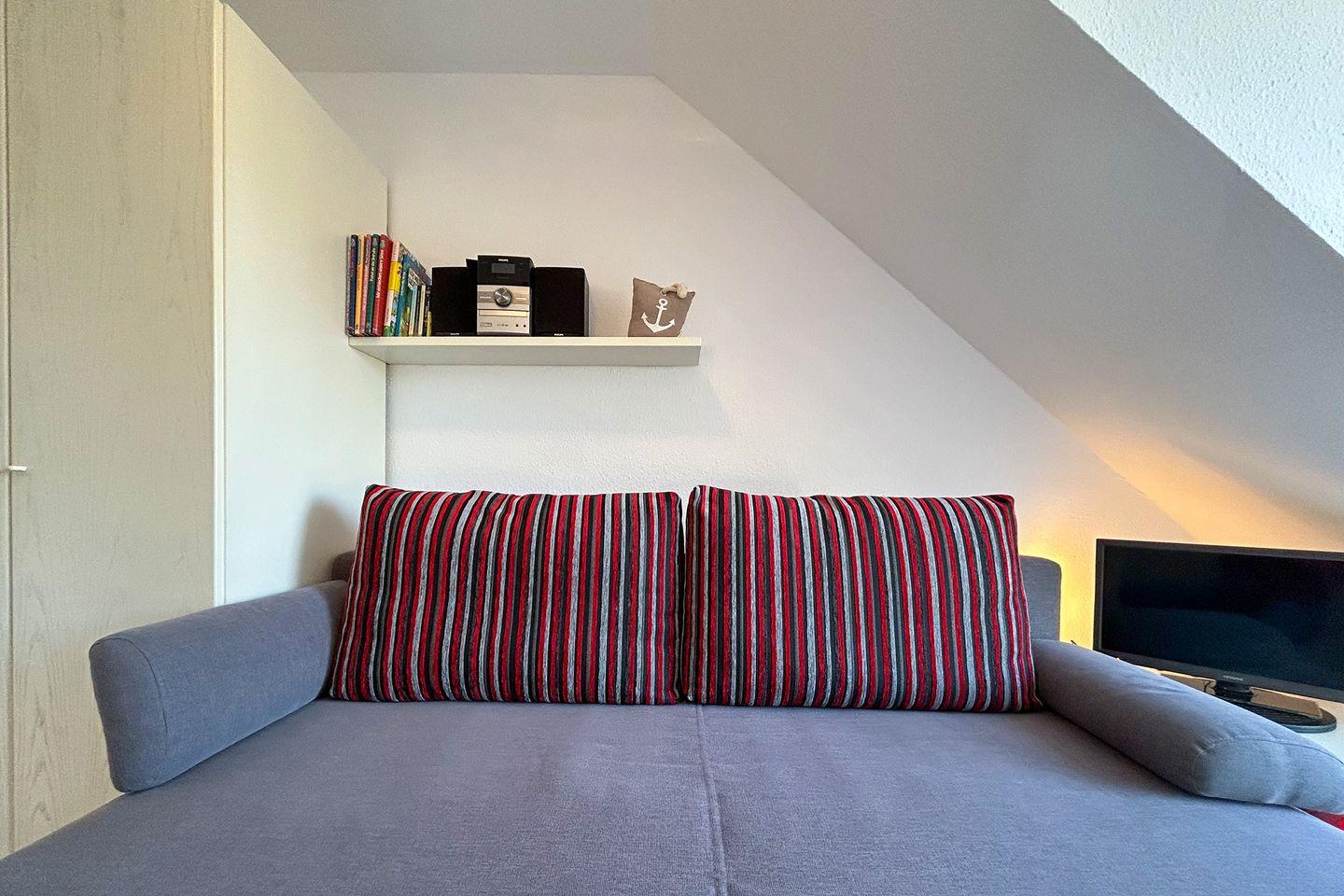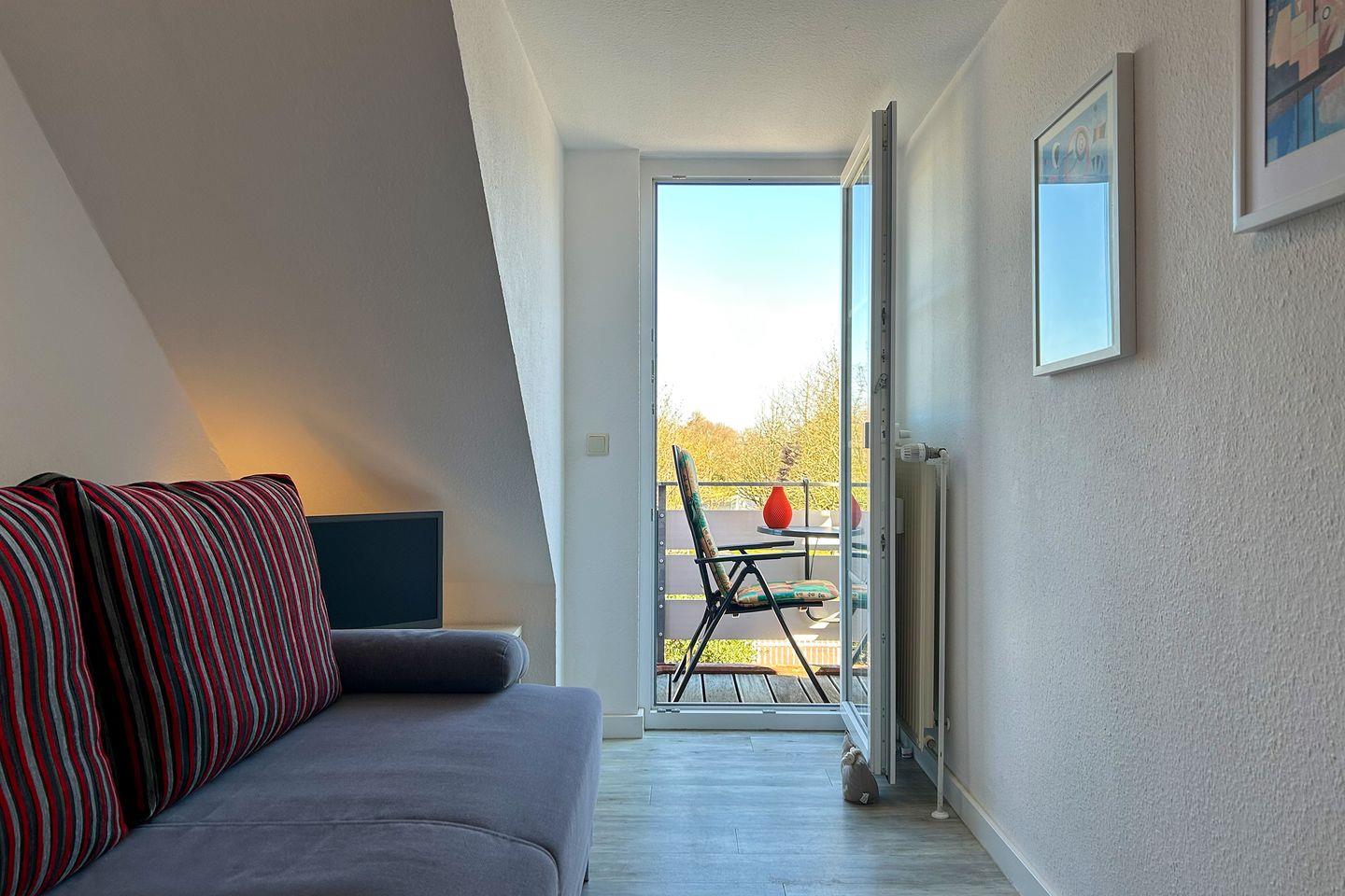 Eine weitere Besonderheit ist der Balkon, auf dem Sie bei schönem Wetter entspannen und die frische Nordseeluft genießen können. Die Wohnung bietet auch einen Privatparkplatz in der Tiefgarage, was das Ankommen und Abreisen besonders komfortabel gestaltet und es Ihnen ermöglicht, die Umgebung mühelos mit dem Auto zu erkunden.