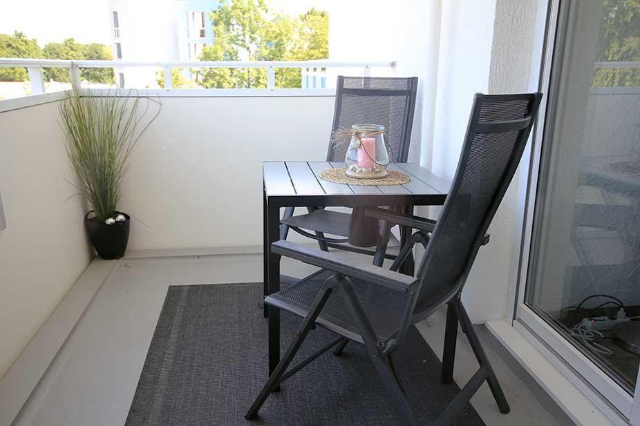 Moderne Ferienwohnung in Cuxhaven-Duhnen mit Balkon, Strandkorb am Meer und kostenfreiem WLAN für entspannte Urlaubstage.