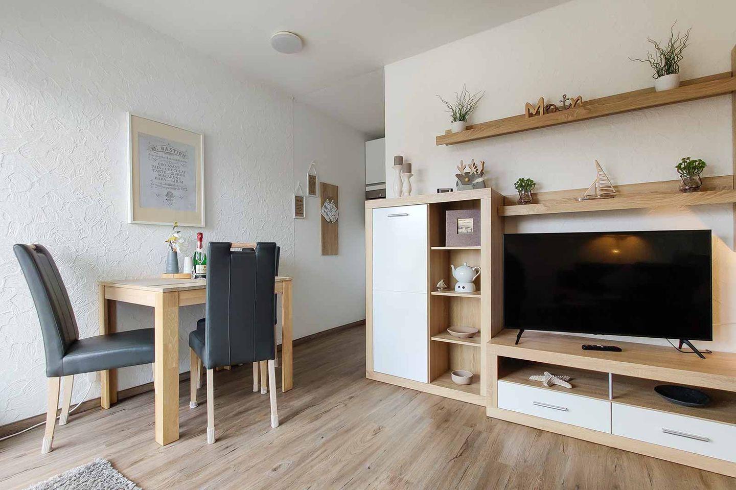 Zusätzlich zu den zwei Boxspringbetten mit Bodyguard-Matratzen im Schlafzimmer steht ein Schlafsofa im Wohnraum zur Verfügung. Der Esstisch ist ausziehbar und das Badezimmer modern renoviert. WLAN (mit eigenem Router!) steht Ihnen in der Wohnung gratis zur Verfügung, außerdem gehört ein fest zugewiesener Garagenplatz zum Angebot.