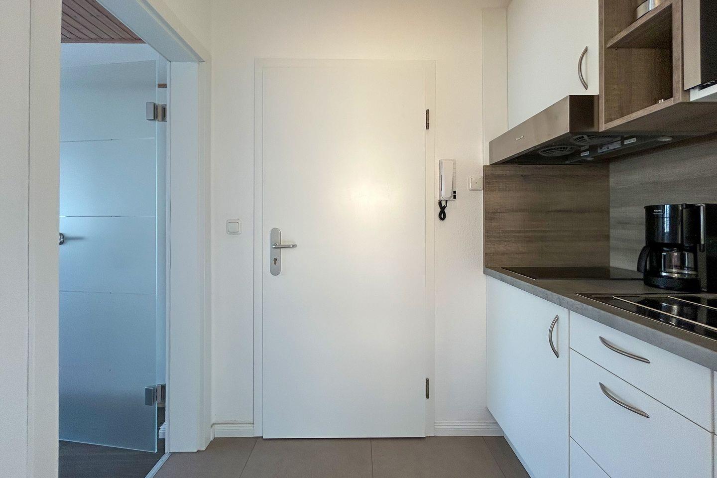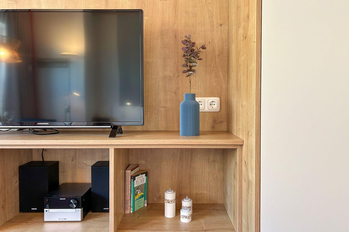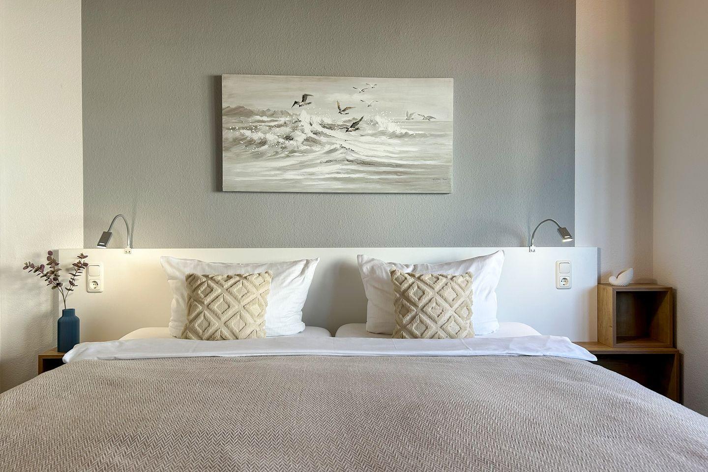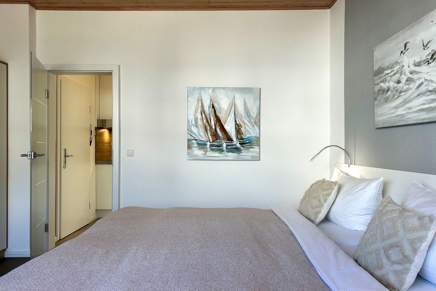 Die gut durchdachte 24 m² große Ferienwohnung im Hochparterre besticht durch eine helle und freundliche Atmosphäre. Der angenehme Parkettboden im Wohnzimmer und Schlafzimmer sorgt für ein gemütliches Ambiente. Hier finden bis zu zwei Personen ein komfortables Zuhause auf Zeit. Der Wohnbereich ist mit einem Fernseher ausgestattet, der Ihnen die Möglichkeit bietet, entspannende Abende zu verbringen, während das kostenlose WLAN Sie immer mit der Außenwelt verbindet.