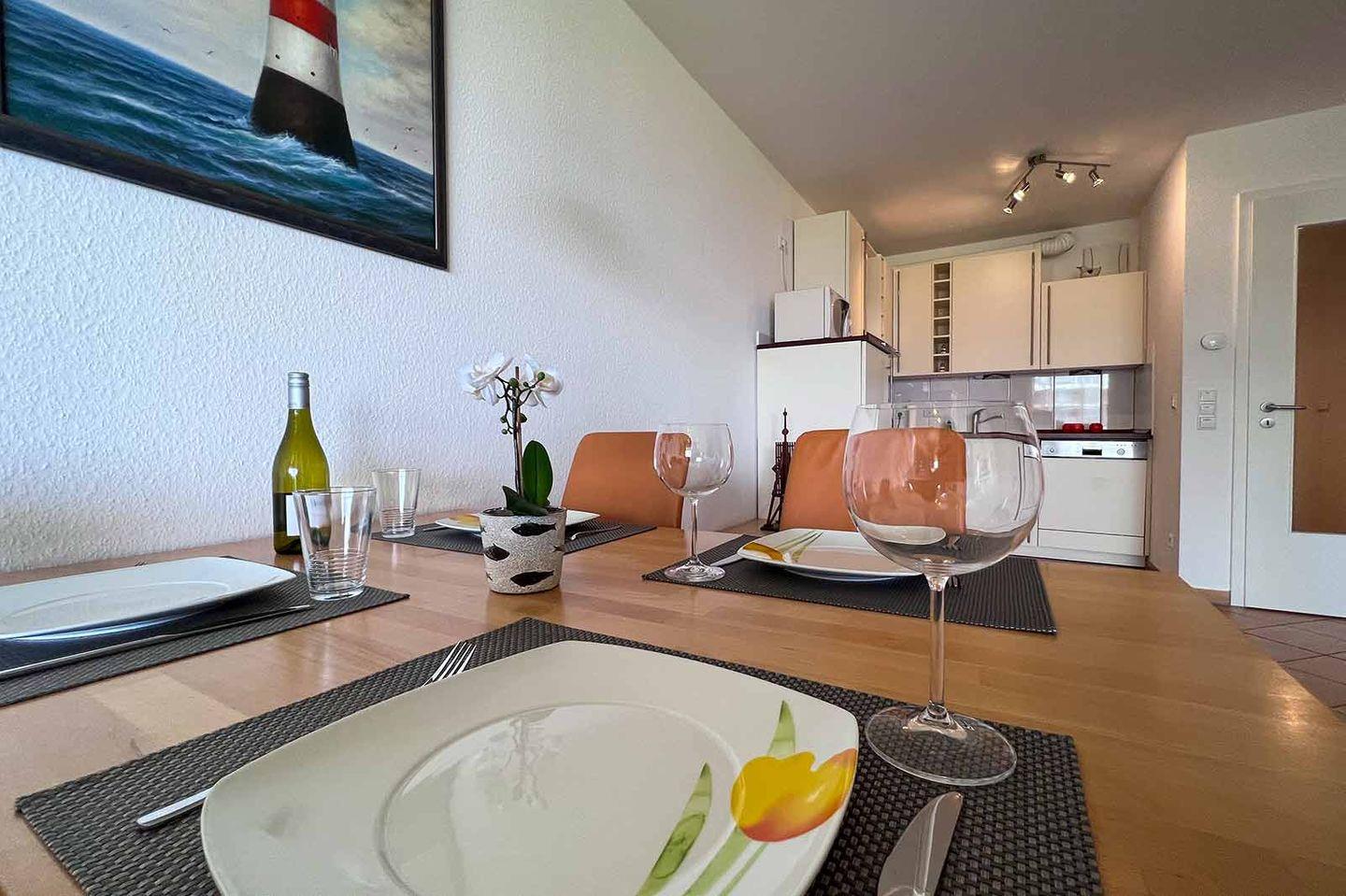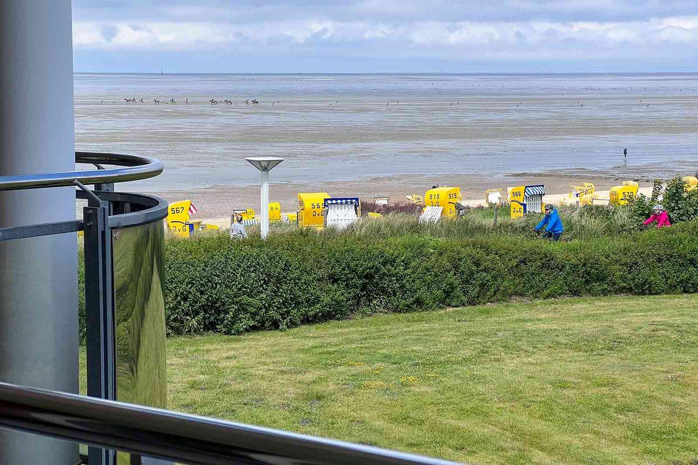 Die Strand-Palais Ferienwohnung 510 in Cuxhaven Duhnen bietet modernen Komfort mit Meerblick nur 10 Meter vom Sandstrand entfernt.