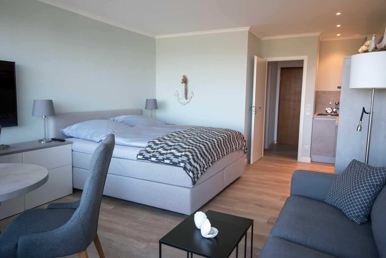 Traumhafter Meerblick für 2 Personen im neu renovierten 1-Raum-Appartment mit großem Balkon.
