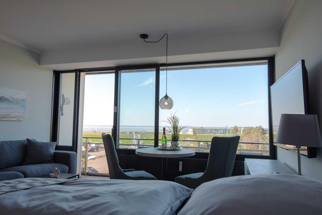 Moderne Ferienwohnung mit großem Balkon und traumhaftem Meerblick direkt am Strand von Cuxhaven-Döse.