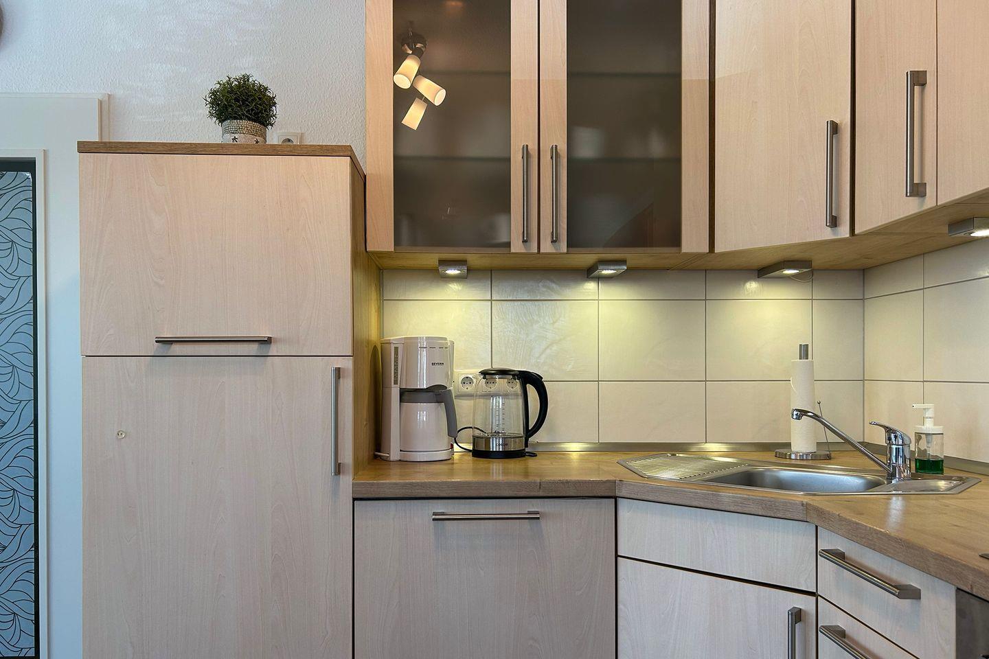 Die zwei Schlafzimmer und der Wohnraum mit Schlafsofa verfügen über insgesamt drei Flachbildfernseher. Neben dem modernen Badezimmer gibt es außerdem ein separates Gäste-WC. Die offene Küche im Wohnraum ist voll ausgestattet, so dass Sie es sich hier garantiert gut gehen lassen können.