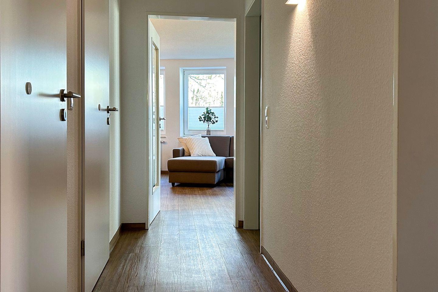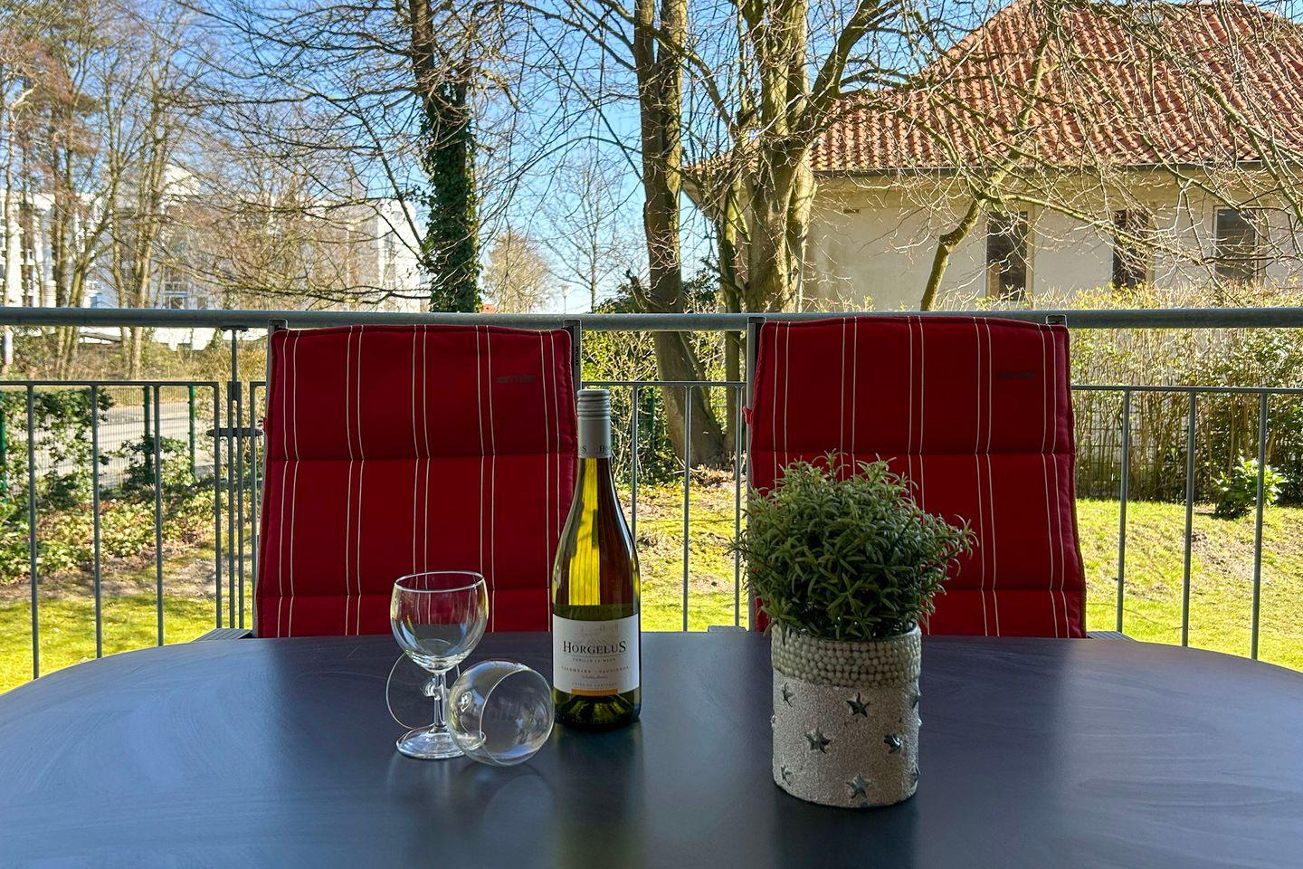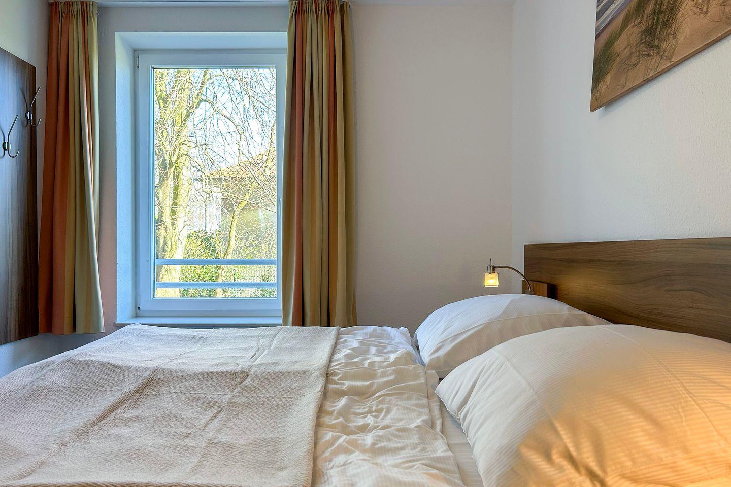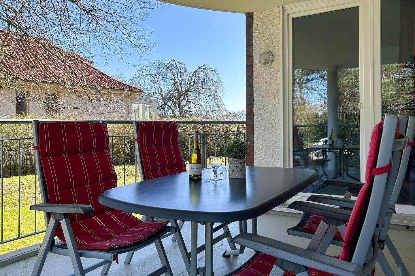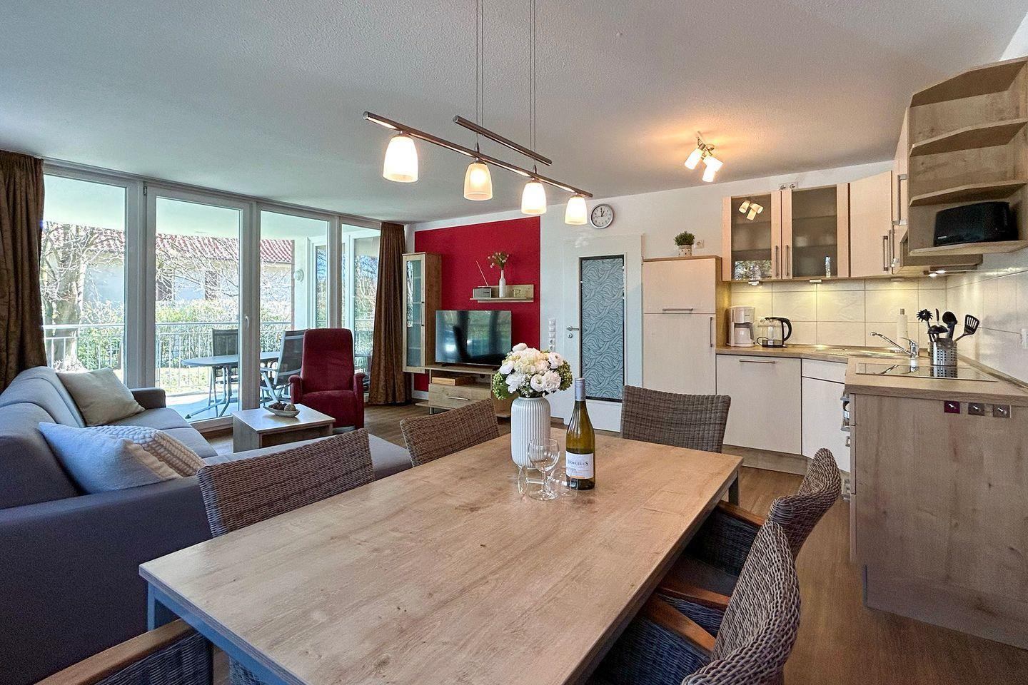 Sie wohnen im Hochparterre in Haus 3 in einer komfortablen 3-Zimmer-Ferienwohnung mit ca. 78 qm Wohnfläche und Platz für bis zu 6 Personen. Die Ferienwohnung ist mit hochwertigen Möbeln ausgestattet und lädt mit dem großzügigen Balkon zum Entspannen im Freien ein.