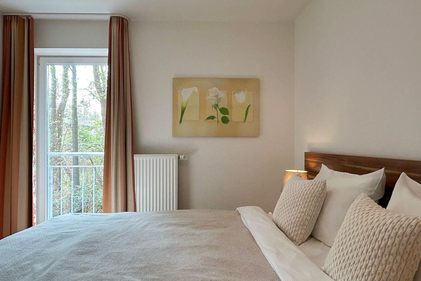 Die Residenz Hohe Lith liegt in unmittelbarer Strandnähe direkt hinter dem Deich in einer verkehrsberuhigten Straße in Cuxhaven-Duhnen. Zum Strand gelangen Sie in ca. 2-3 Gehminuten. Die Wohnung in Haus 2 im Hochparterre ist komfortabel ausgestattet mit 2 Schlafzimmern mit Doppelbett und LCD-TV, 1 Badezimmer mit Dusche und WC, 1 separates Gäste-WC. Außerdem verfügt die Ferienwohnung über einen großen Balkon. Ein Stellplatz auf dem Parkdeck mit Zufahrt über die Tiefgarage ist für Sie reserviert. Ein abschließbarer Fahrradraum in der Tiefgarage von Haus 2 ist leicht zugänglich und sichert Ihre Räder.