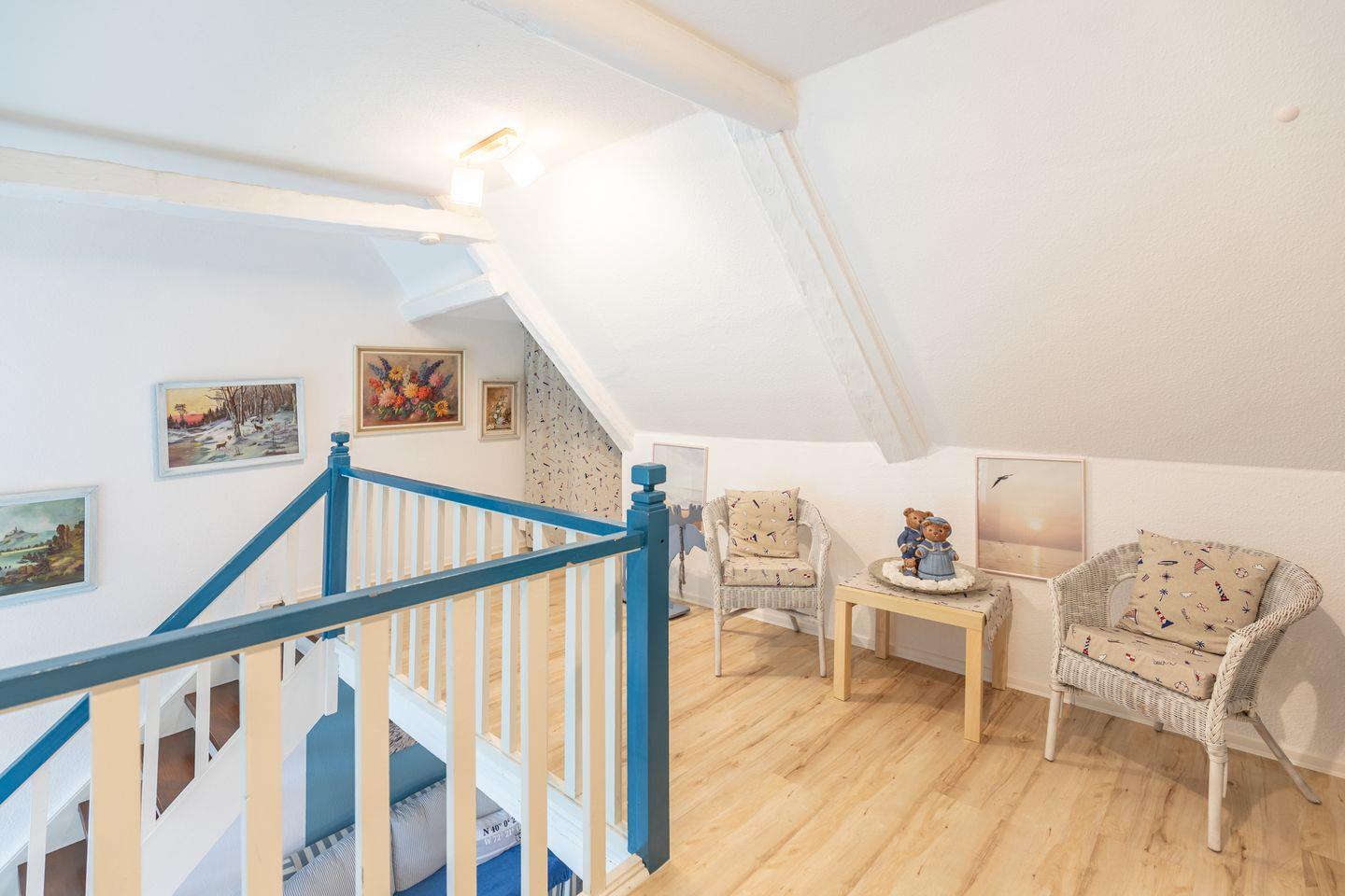 Auf großzügigen 140 m² finden bis zu vier Personen viel Platz zum Entspannen, Träumen und Genießen. Die Wohnung erstreckt sich über zwei Etagen und vereint moderne Ausstattung mit ländlichem Charme. Im offenen Wohn- und Essbereich können Sie gemeinsam kochen, essen oder sich am knisternden Kamin einkuscheln – besonders schön an kühleren Tagen. Die voll ausgestattete Küche lässt dabei keine Wünsche offen: Espressomaschine, Spülmaschine, Mikrowelle und vieles mehr stehen Ihnen zur Verfügung.
