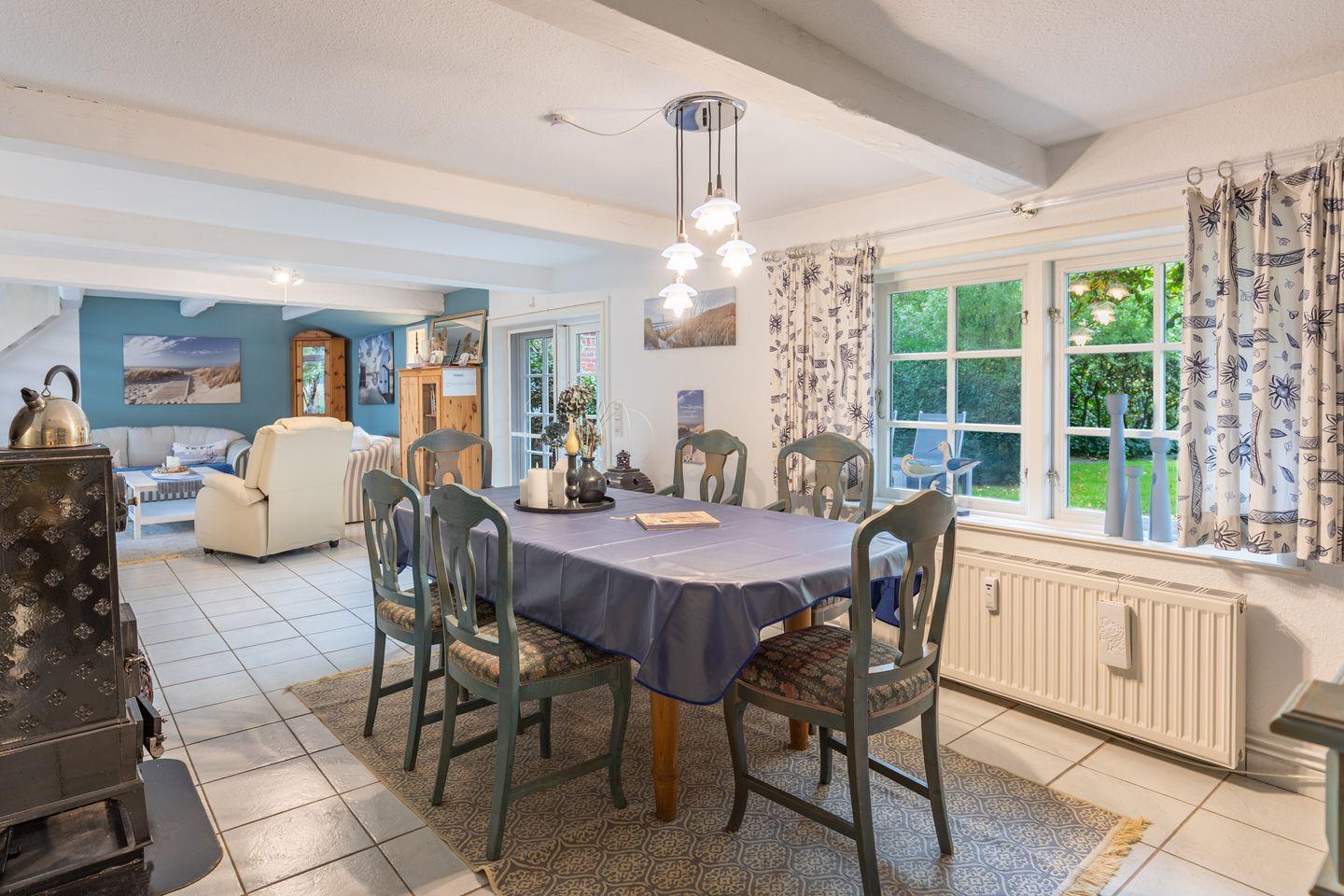 Stilvolle Ferienwohnung mit Kamin und großer Terrasse in Dörpum, ideal für Erholung in Nordfriesland.