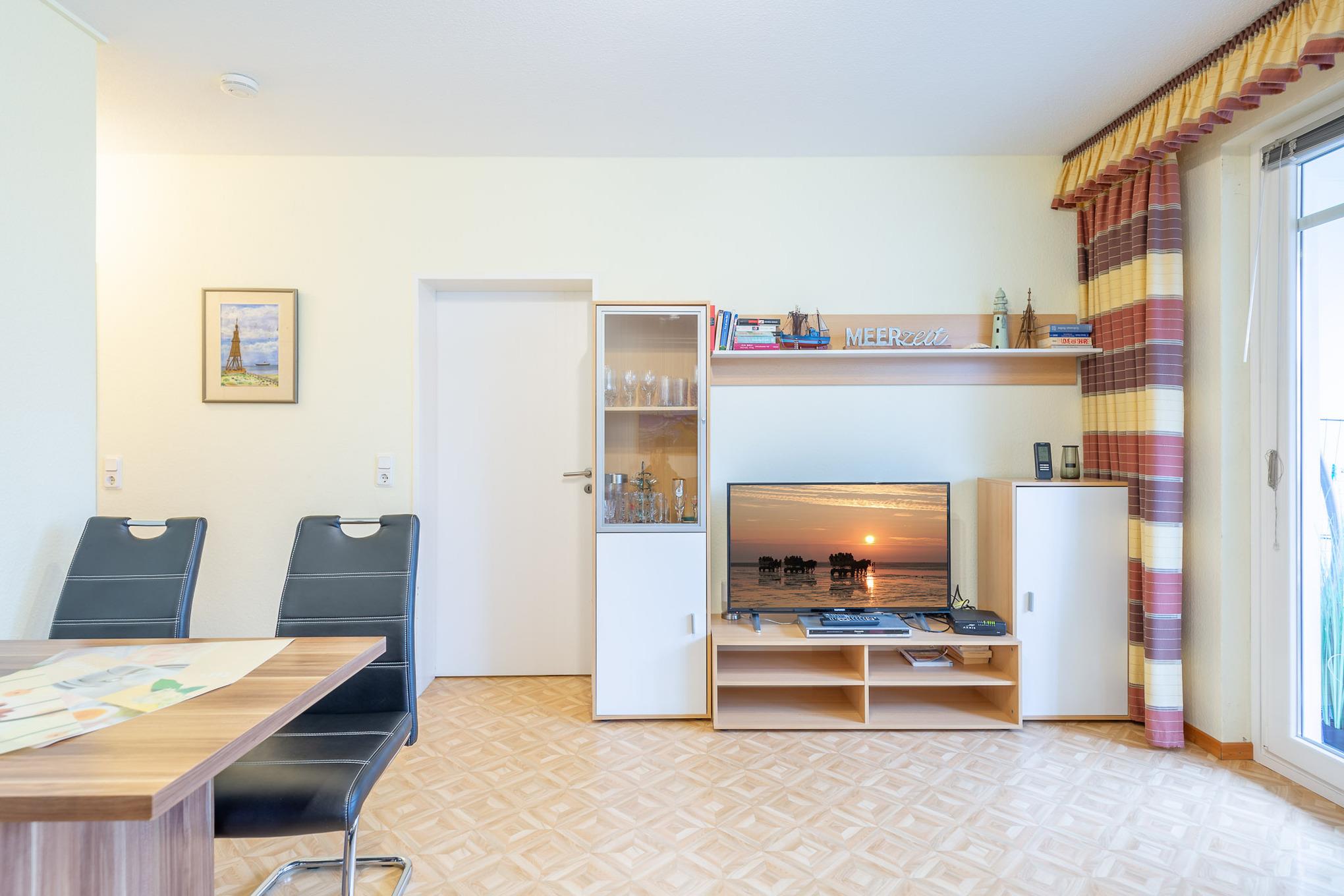 Die 2-Zimmer Ferienwohnung bietet auf 55 m² ausreichend Platz für bis zu 3 Personen. Das separate Schlafzimmer ist mit einem komfortablen Doppelbett (2x90x190) und einem Flachbildfernseher ausgestattet. Das Schlafsofa im kombinierten Wohn- und Schlafbereich ermöglicht auch eine Belegung zu Dritt. Dank kostenlosem W-LAN können Sie Ihre schönsten Urlaubsfotos direkt mit Freunden teilen.