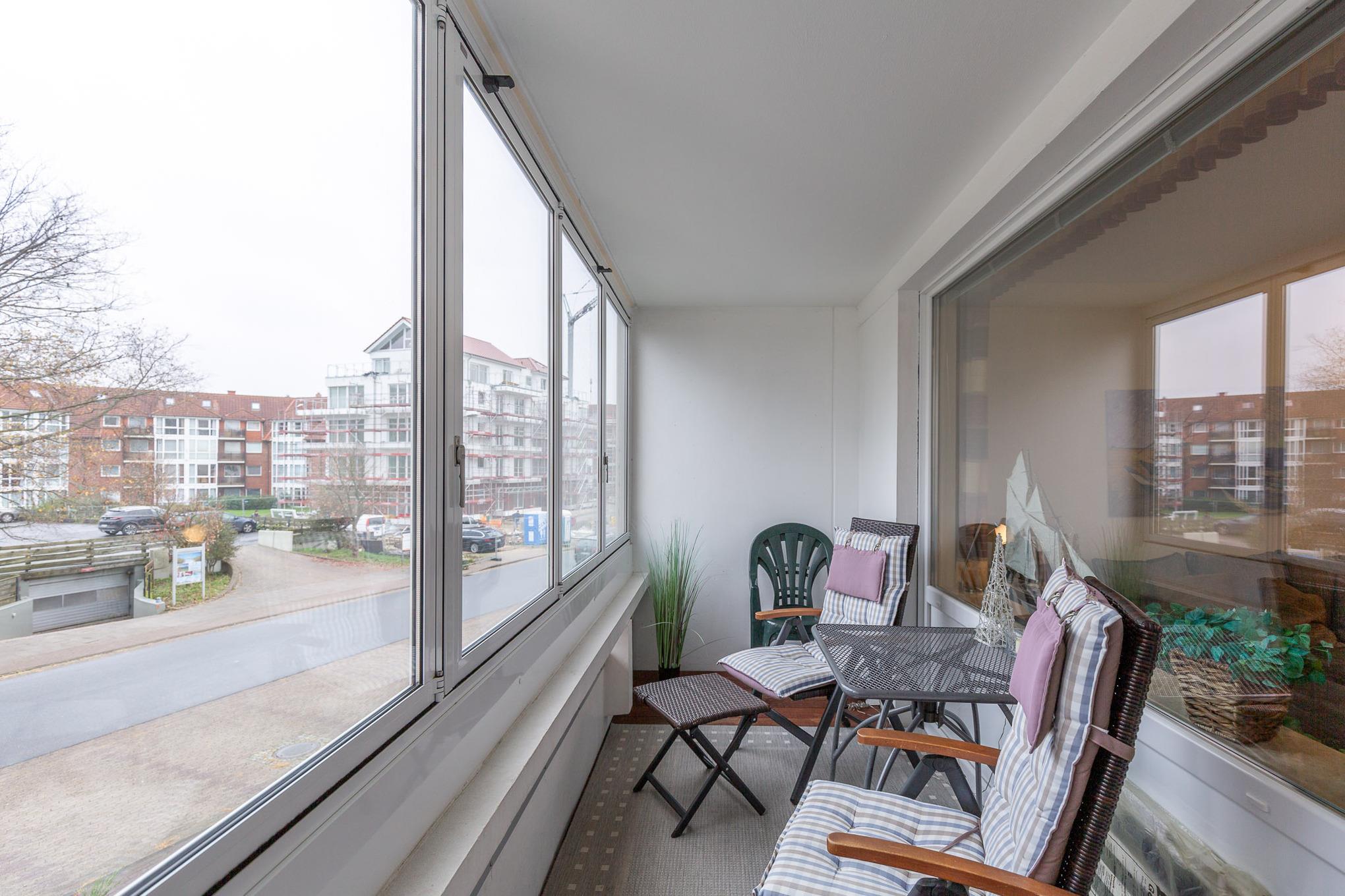 Des Weiteren bietet Ferienwohnung Atlantic 113 einen verglasten und möblierten Balkon. Die Verglasung lässt sich bei Bedarf öffnen. Das moderne Bad ist mit Dusche, WC und einem Handtuchtrockner ausgestattet. Der Wohnung ist ein KFZ-Stellplatz fest zugeordnet.