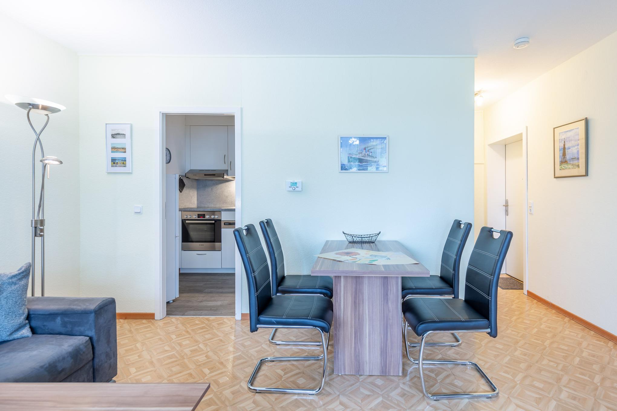 Die günstige 2-Zimmer Ferienwohnung bietet ein sehr gutes Preis-/Leistungsverhältnis für bis zu 3 Personen. Am Abend können Sie bei einem Glas Wein einen erlebnisreichen Tag ausklingen lassen. Dabei sorgt der Flachbildfernseher im Wohnbereich für beste Unterhaltung. Die Küche ist mit einem Backofen, Geschirrspüler sowie einem Kühlschrank mit 3 Gefrierfächern ausgestattet.