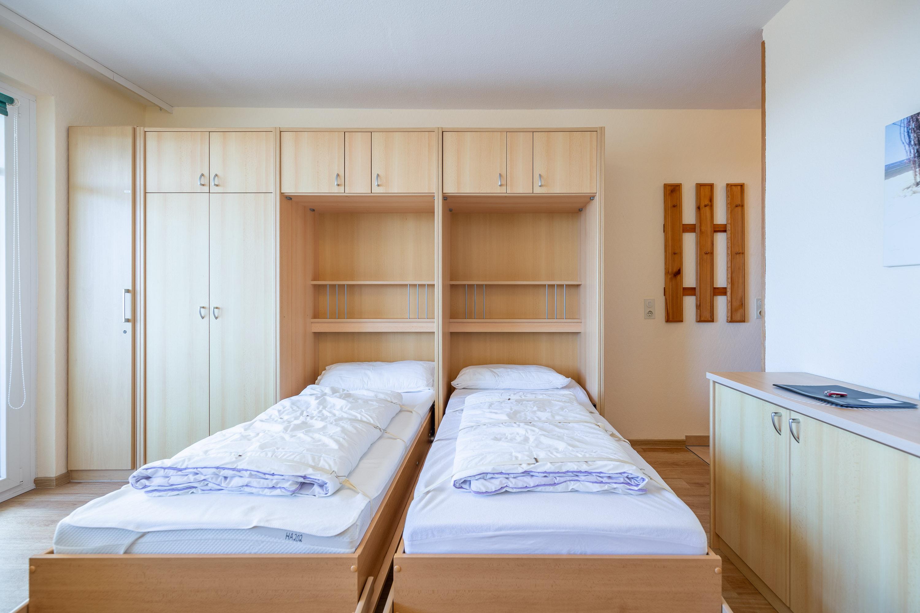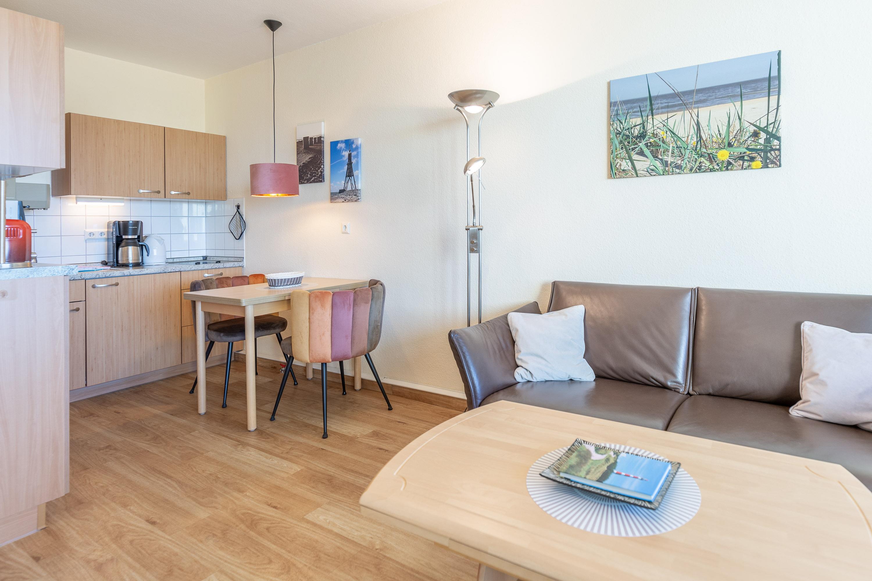 Die günstige 1-Zimmer Ferienwohnung bietet ein sehr gutes Preis-/Leistungsverhältnis für bis zu 2 Personen. Am Abend können Sie bei einem Glas Wein traumhafte Sonnenuntergänge beobachten und einen erlebnisreichen Tag ausklingen lassen. Das Schrankbett im kombinierten Wohn- und Schlafbereich gewährleistet einen erholsamen Schlaf. Ein komfortables Sofa und ein Sessel laden zum Verweilen ein. Dank LCD-Fernseher müssen Sie auch im Urlaub nicht auf Ihre Lieblingsserie verzichten. Die integrierte Küche ist mit einem Cerankochfeld sowie einem Kühlschrank mit Gefrierfach ausgestattet.