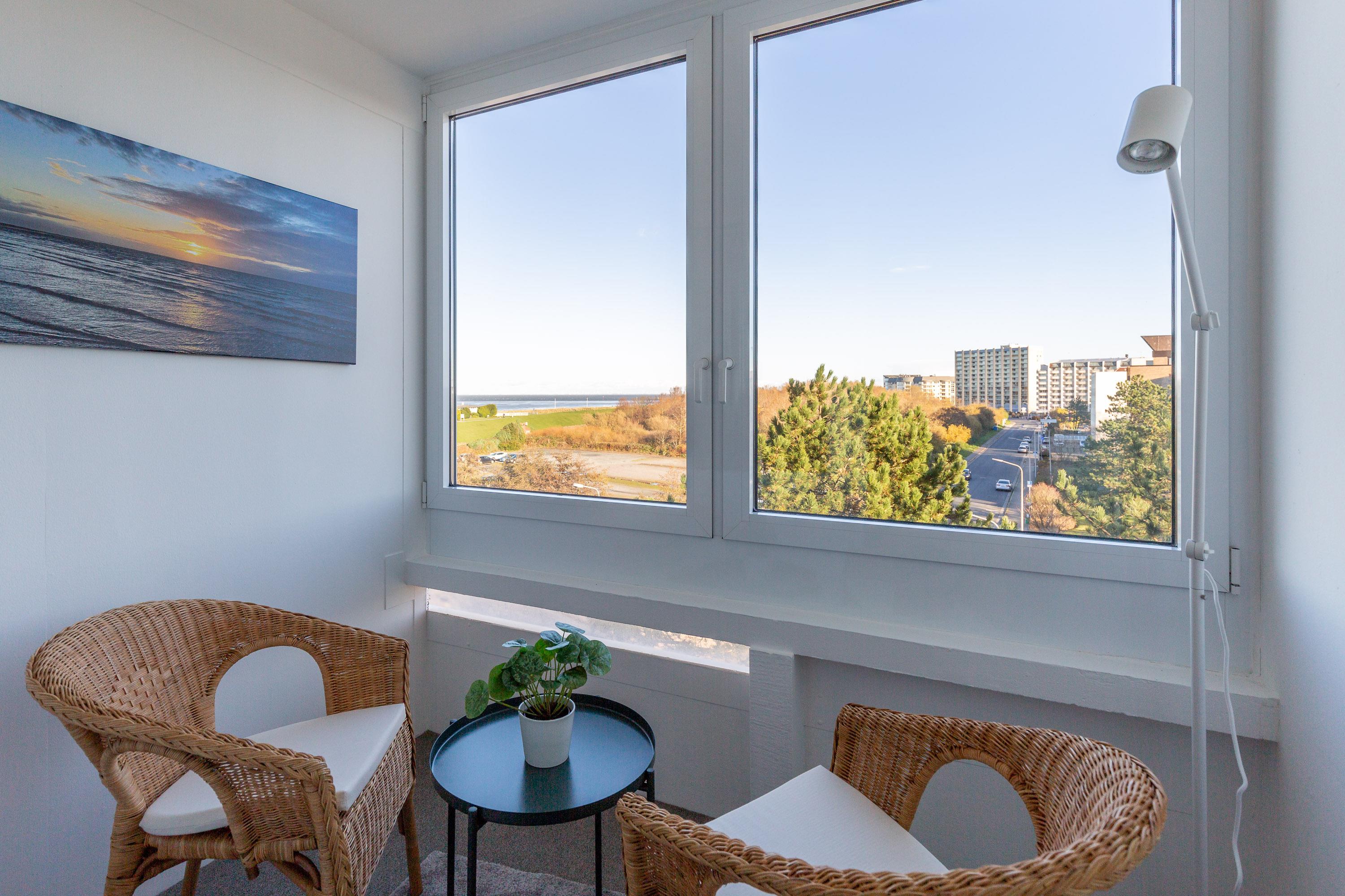 Zwei Balkone mit Meerblick, davon einer verglast, schenken Ihnen zu jeder Jahreszeit einzigartige Augenblicke am Wasser. Kostenloses WLAN, ein modernes Bad sowie ein eigener Parkplatz machen Ihren Aufenthalt rundum komfortabel.