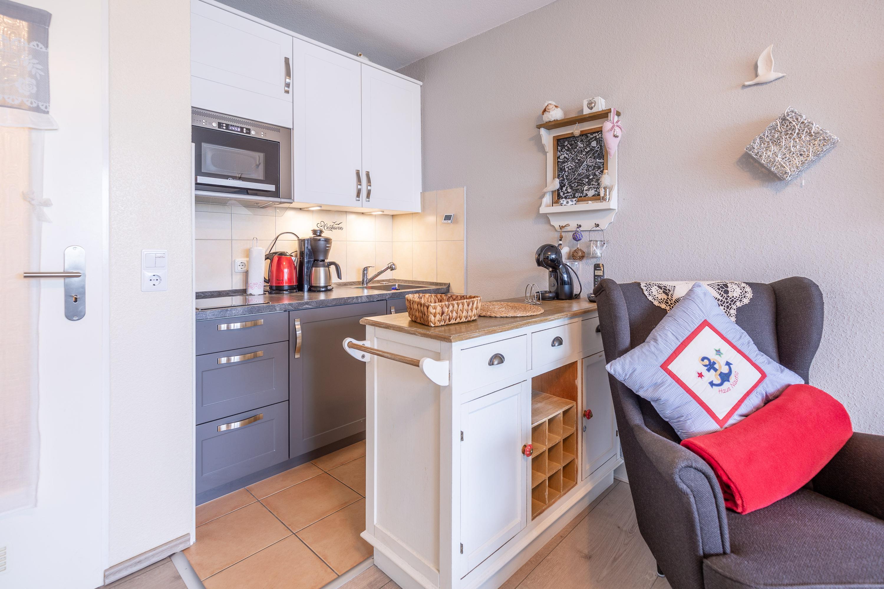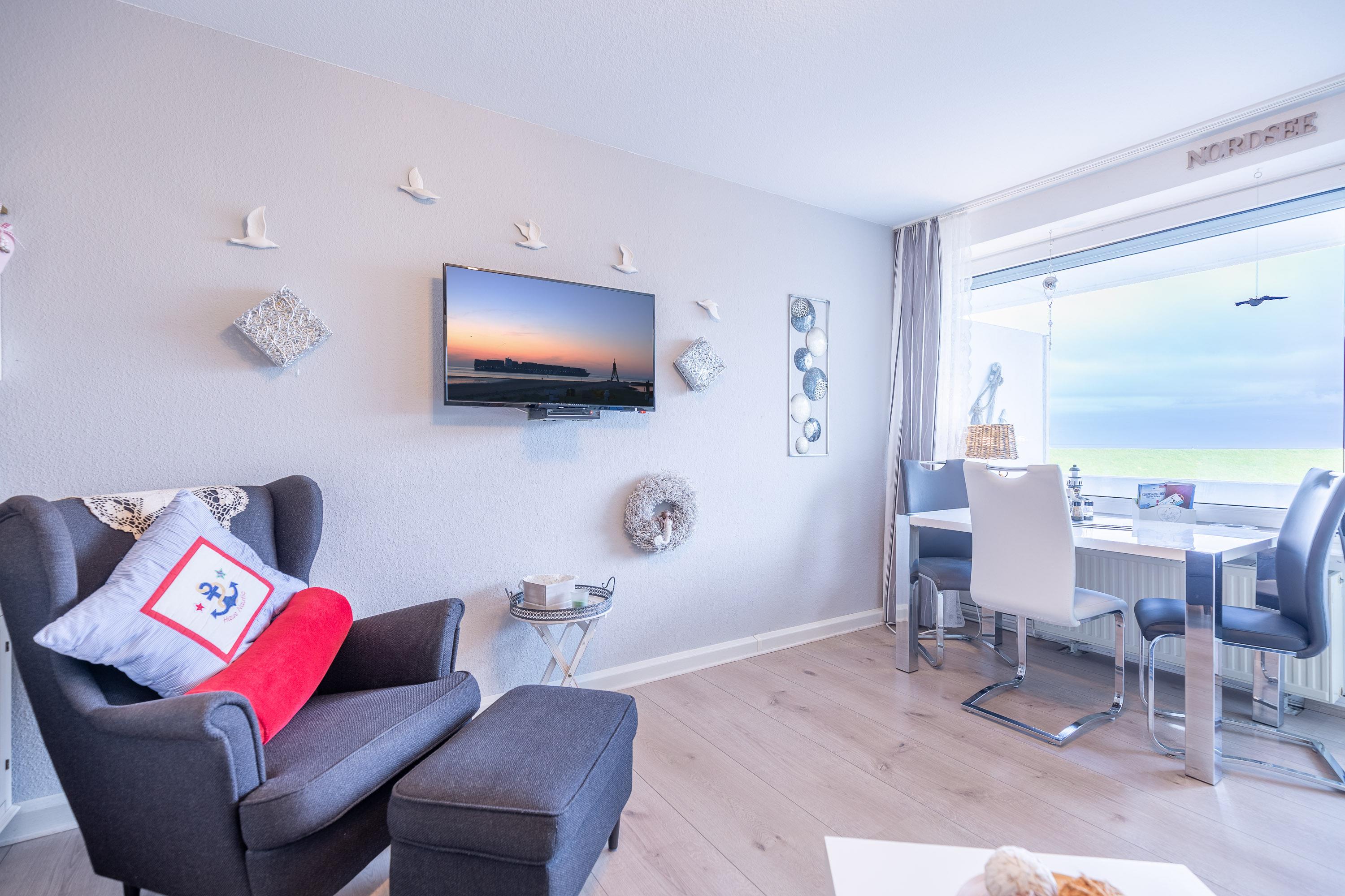 Das Tageslichtbad ist mit Dusche und WC ausgestattet. Auf dem möblierten Balkon genießen Sie einen herrlichen Ausblick auf die Grimmershörnbucht, den Hafen und das bunte Treiben auf dem Wasser. Ein eigener KFZ-Stellplatz steht Ihnen selbstverständlich ebenfalls zur Verfügung. Das Haus Nautic befindet sich in bester Lage direkt an der beliebten Grimmershörnbucht. Rad- und Wanderwege starten direkt vor der Haustür. Und wenn das Wetter mal nicht mitspielt: Das hauseigene Schwimmbad und die Sauna stehen Ihnen kostenlos zur Verfügung